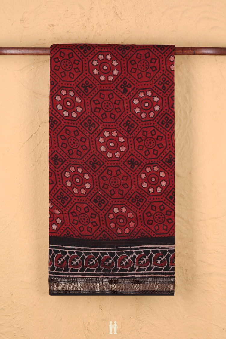Chanderi Silk Cotton Saree In Red With Printed Design