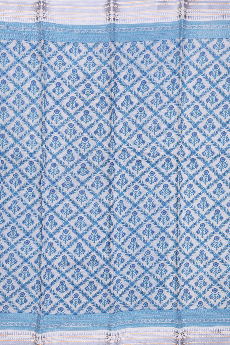 Chanderi Silk Cotton Saree In White With Diamond Design