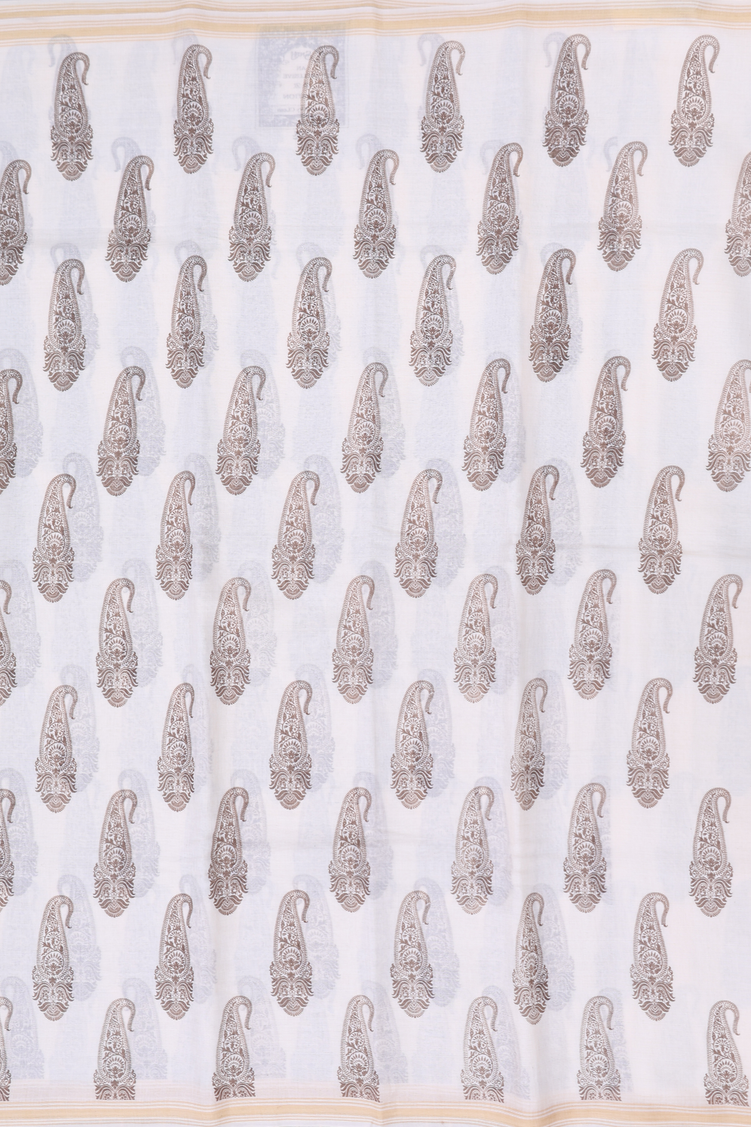 Chanderi Silk Cotton Saree In White With Paisley Design