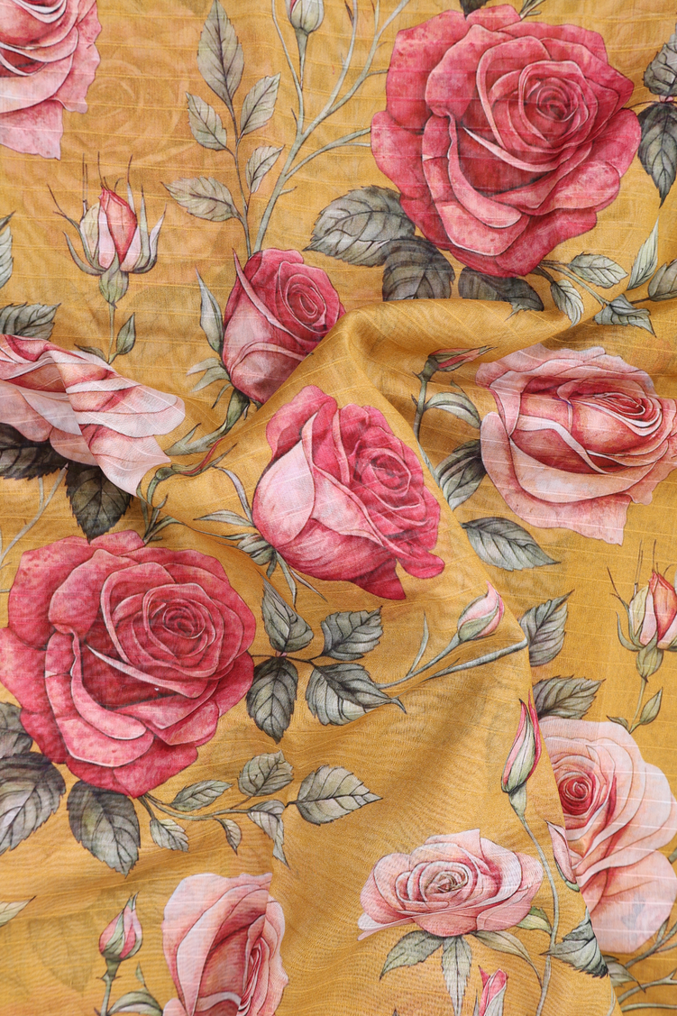 Elevate your ethnic wardrobe with this exquisite chanderi silk cotton saree in radiant yellow. The lightweight blend of silk and cotton offers unparalleled comfort for all-day wear, while the delicate floral printed design adds timeless elegance. Perfect for festive occasions, celebrations, or refined everyday styling, this saree drapes beautifully and showcases the finest craftsmanship. The breathable fabric ensures ease of movement, making it an ideal choice for the Indian climate. A versatile piece that seamlessly transitions from traditional gatherings to contemporary settings.