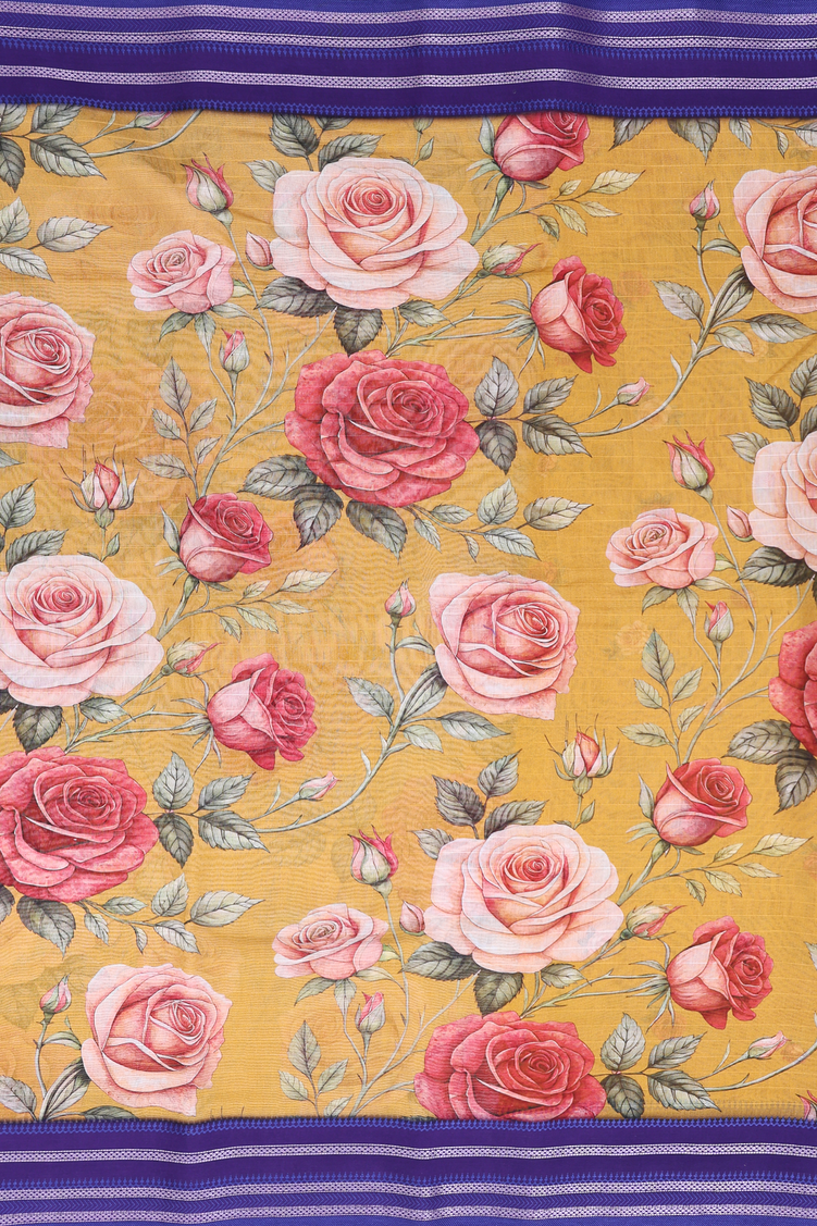 Chanderi Silk Cotton Saree Yellow With Floral Printed Design
