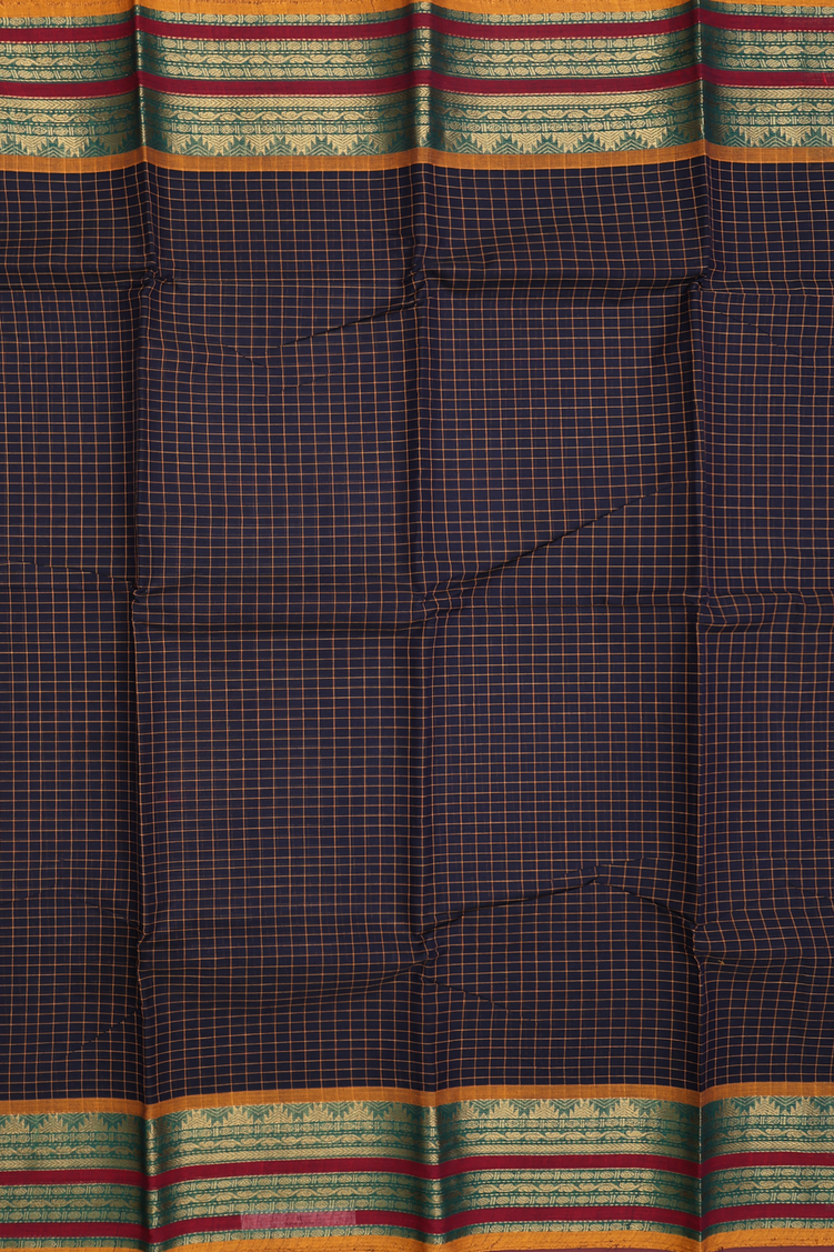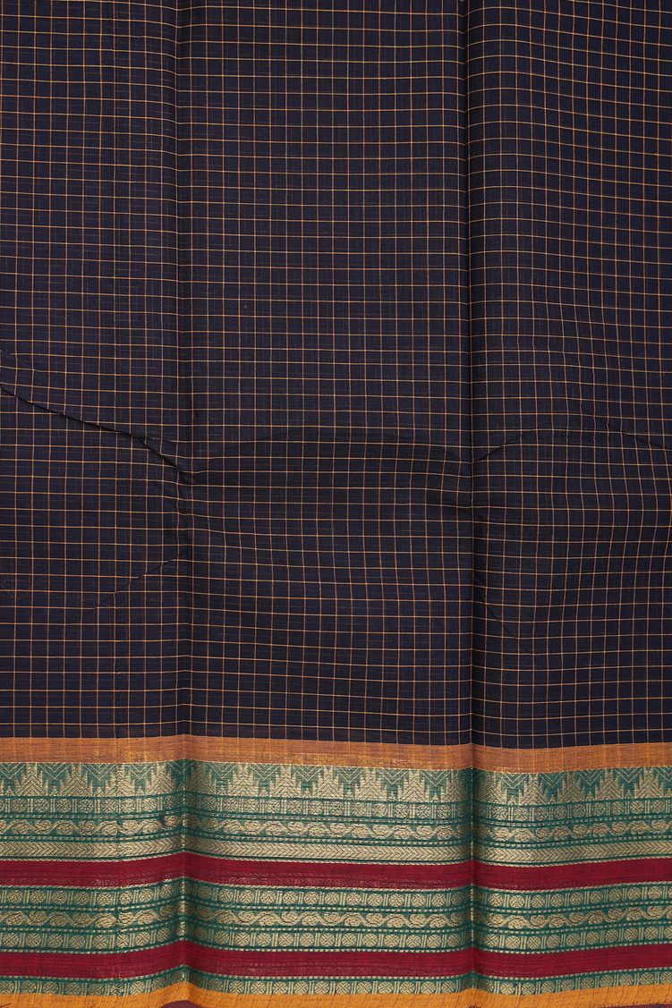Chettinadu Cotton Saree In Black With Checks Design