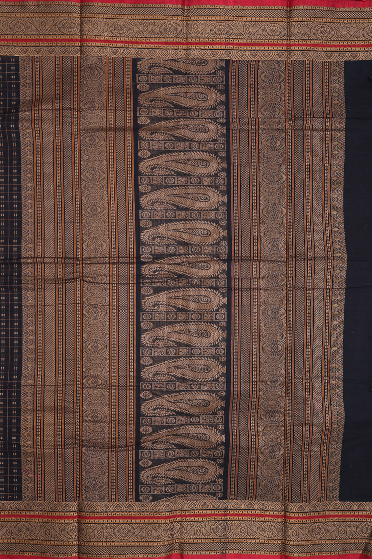 Chettinadu Cotton Saree In Black With Checks Design