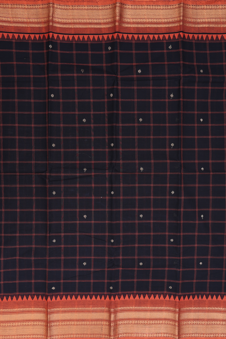 Chettinadu Cotton Saree In Black With Checks Design