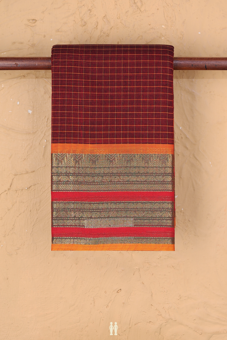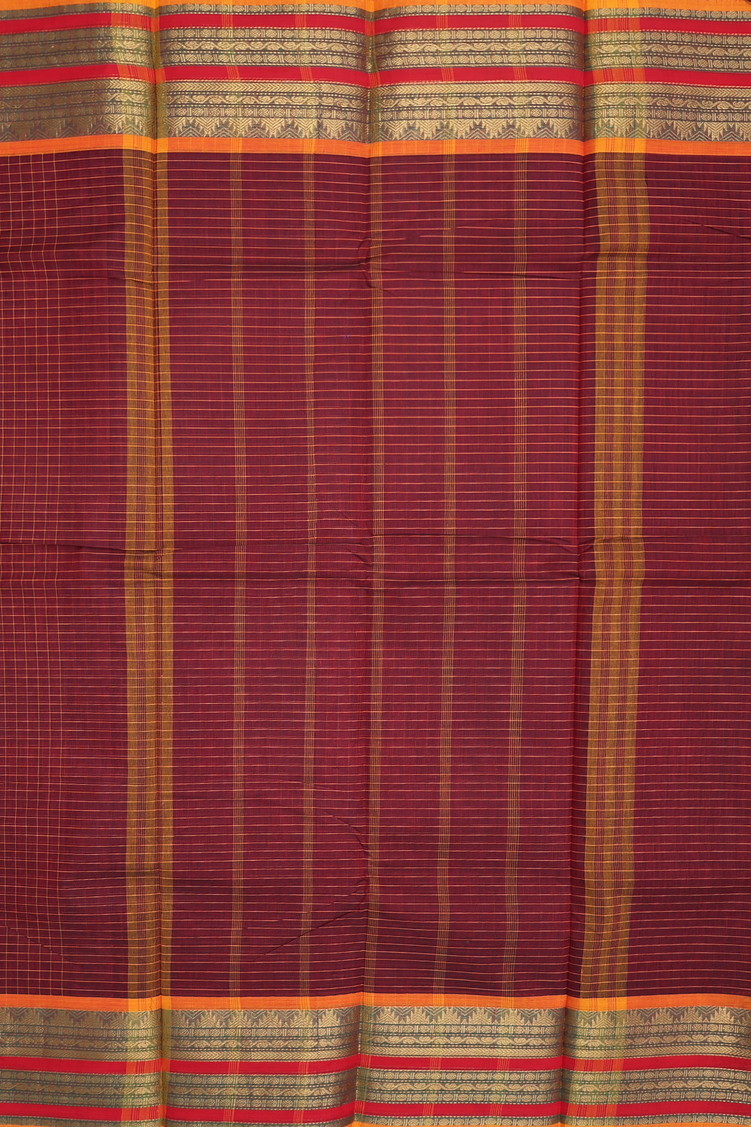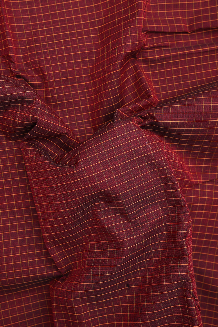 Chettinadu Cotton Saree In Maroon With Checks Design