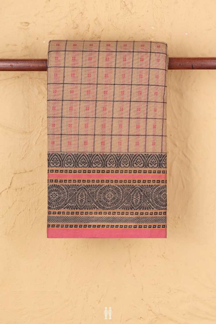 Experience the timeless charm of traditional craftsmanship with this chettinadu cotton saree in a rich brown hue, featuring an elegant checks design. The breathable cotton fabric ensures comfort throughout the day, while the classic pattern adds a refined touch to your ensemble. Perfect for both casual and formal occasions, this saree blends heritage with contemporary style for a sophisticated look.