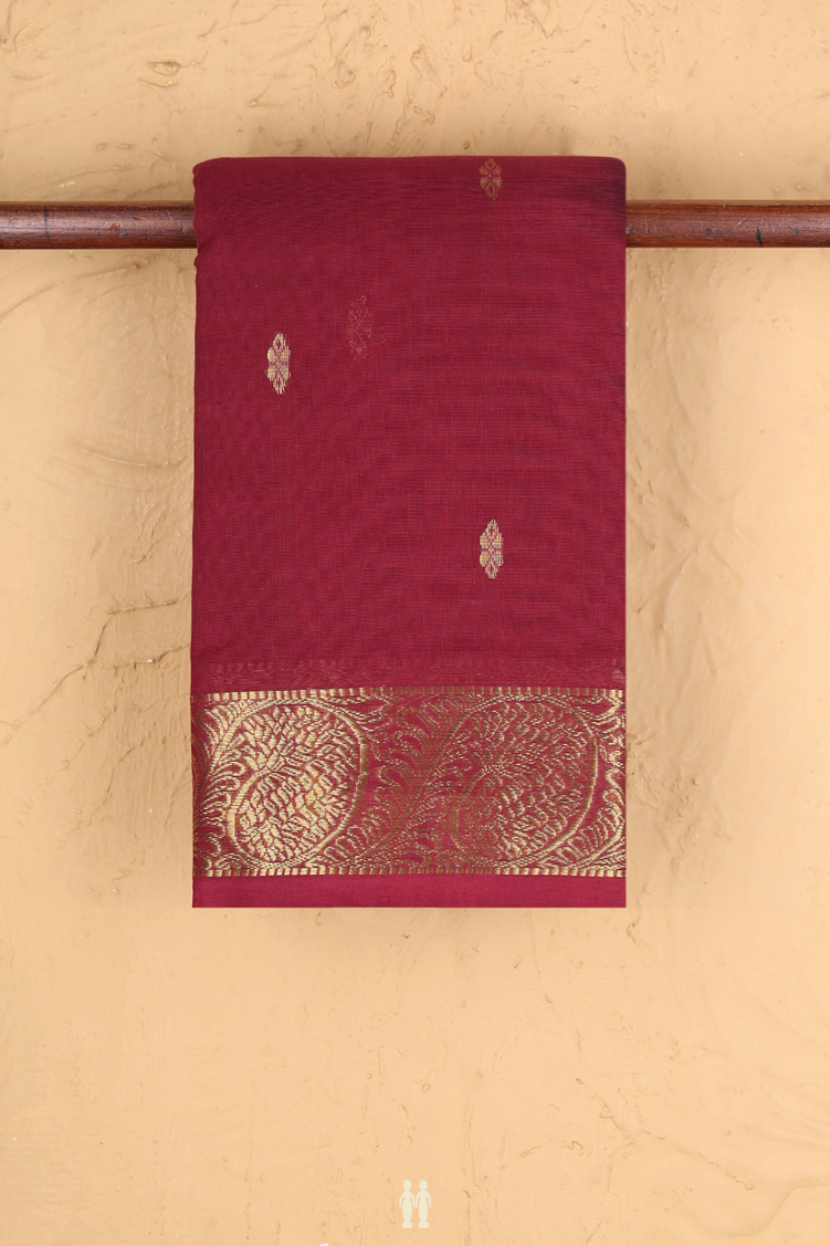 Chettinadu Cotton Saree In Burgundy Red With Floral Buttas