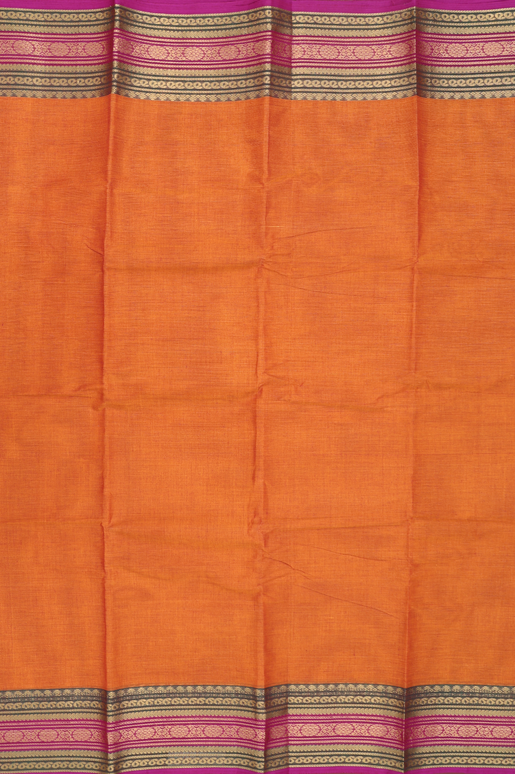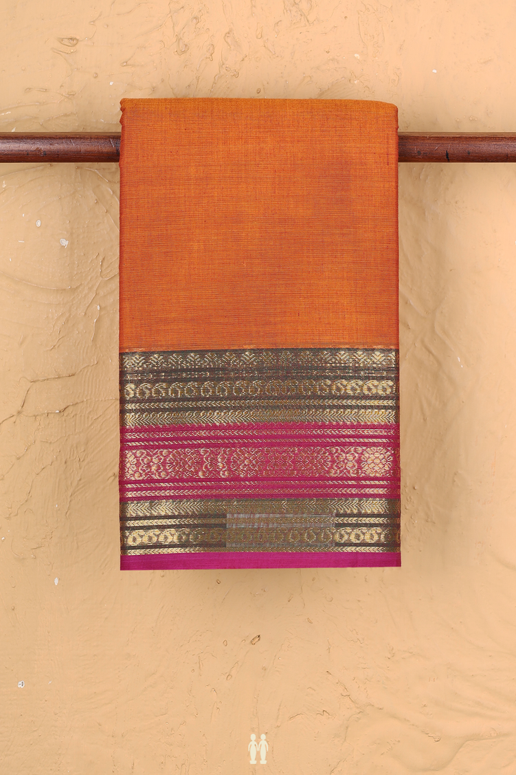 Chettinadu Cotton Saree In Copper Orange With Zari Border