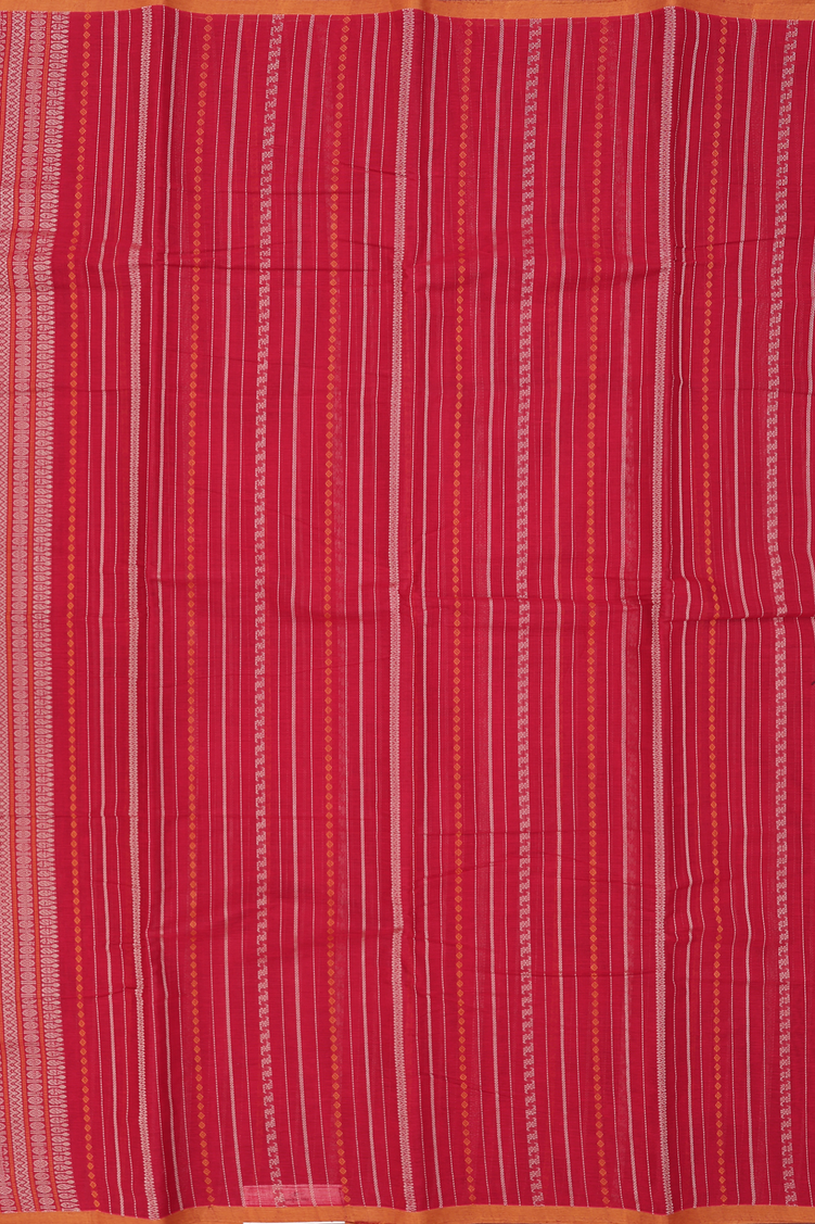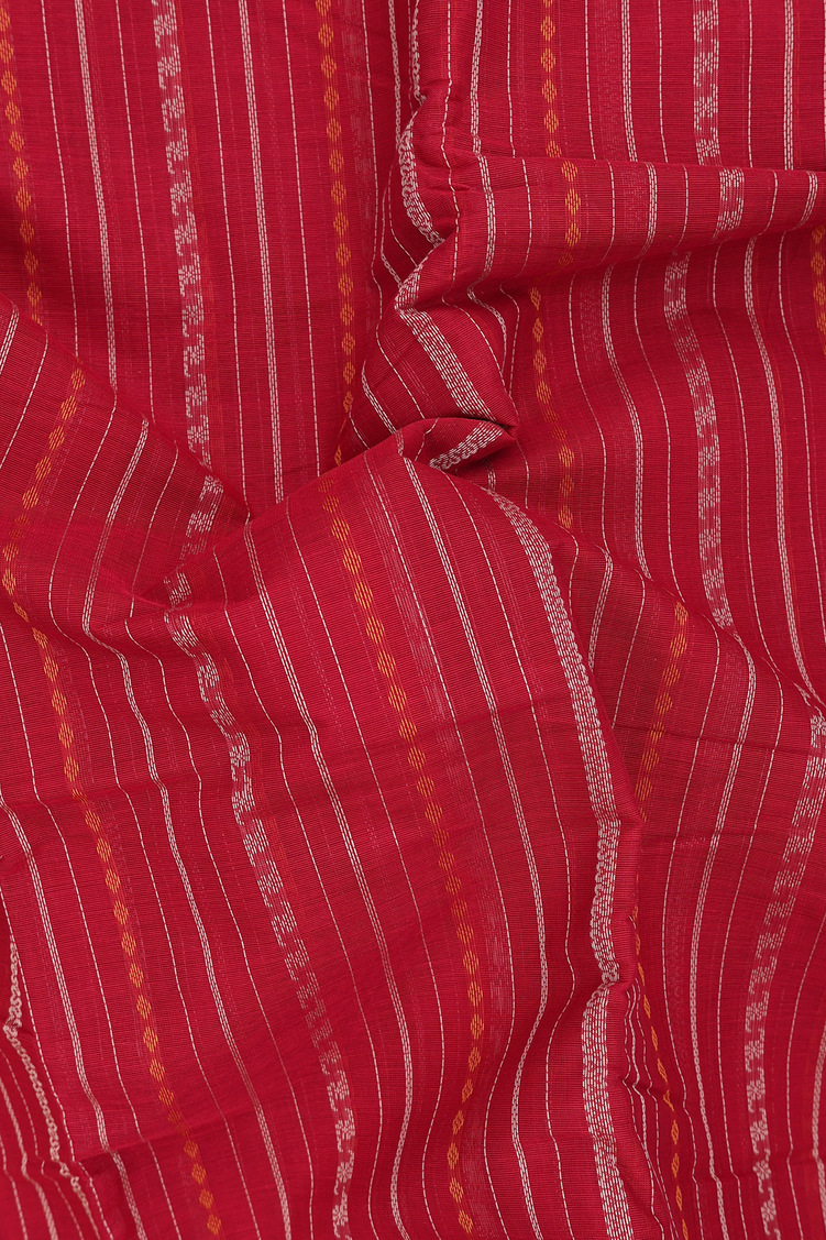 Chettinadu Cotton Saree In Crimson Red With Stripes Design