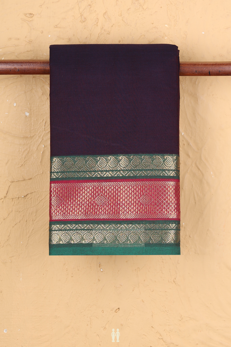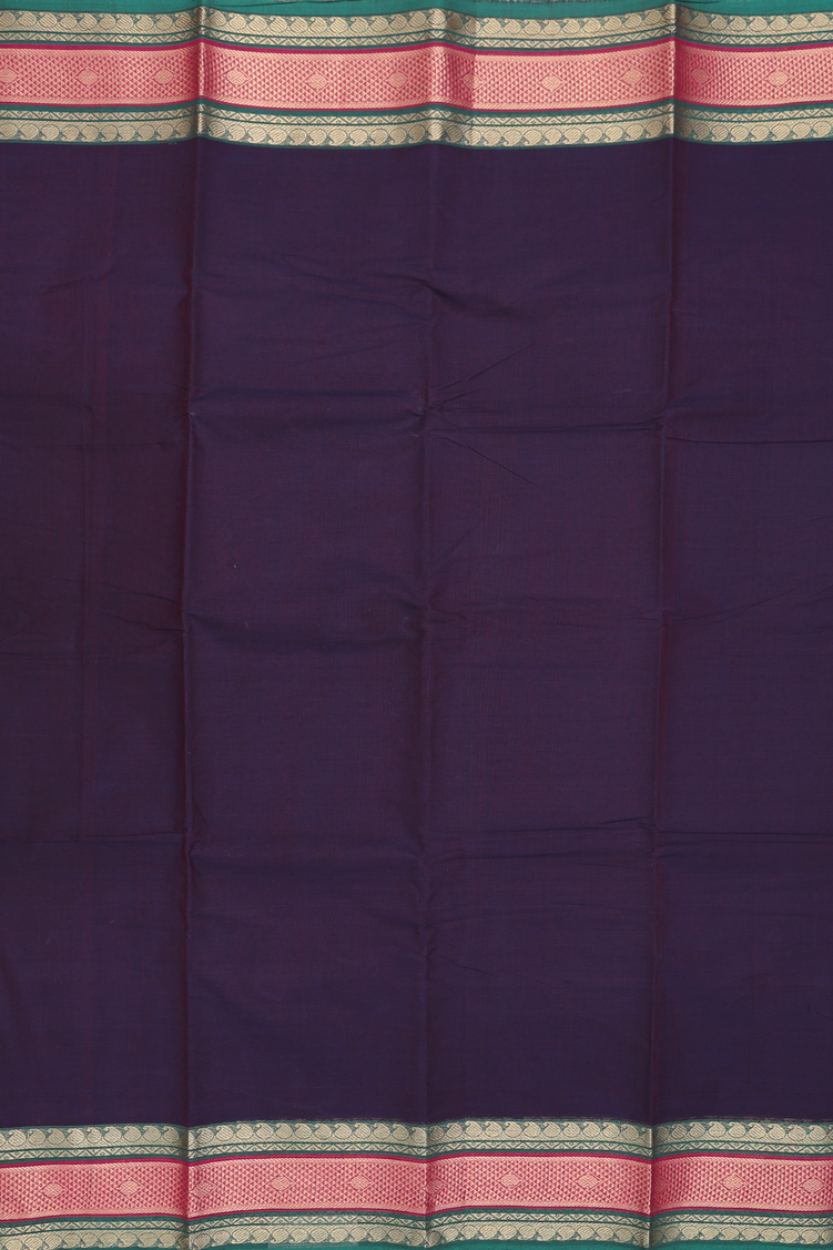 Chettinadu Cotton Saree In Deep Purple With Paisley Border
