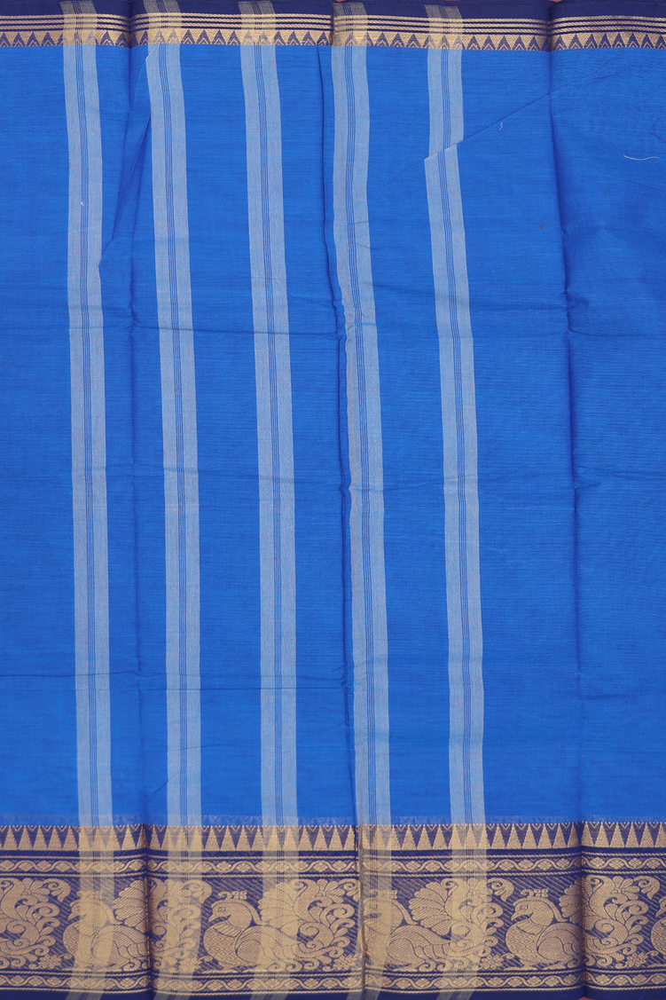 Chettinadu Cotton Saree In Indigo Blue With Peacock Border