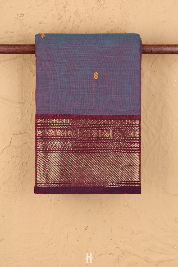 Chettinadu Cotton Saree In Dual Tone With Threadwork Buttas