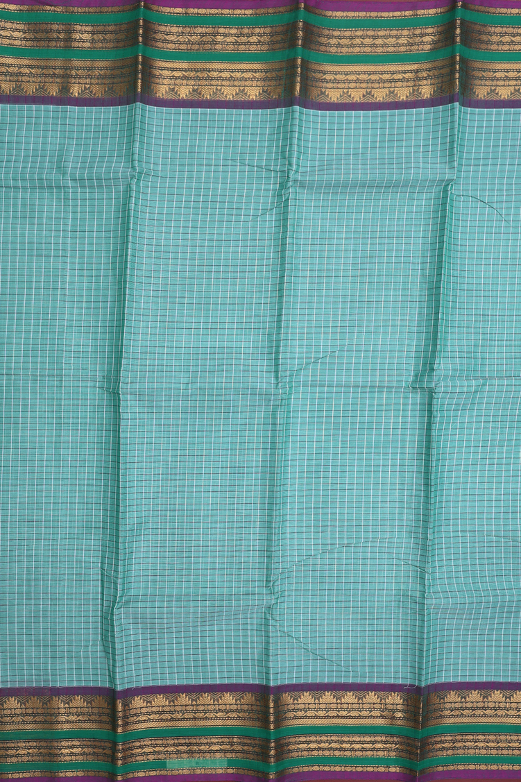 Chettinadu Cotton Saree In Dusty Green With Checks Design