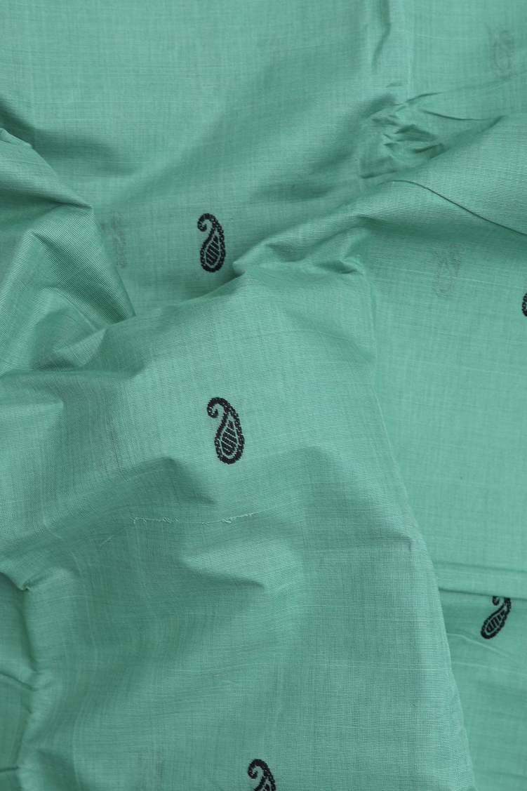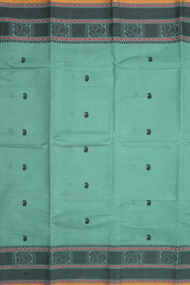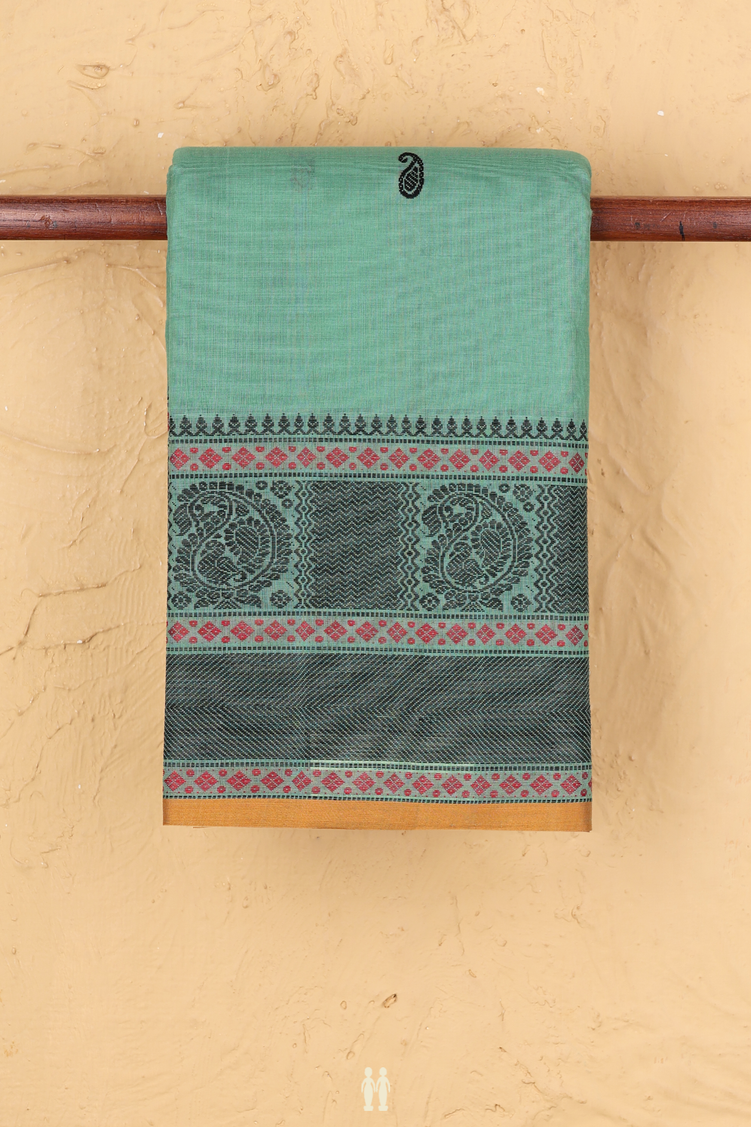 Chettinadu Cotton Saree In Dusty Green With Paisley Buttas