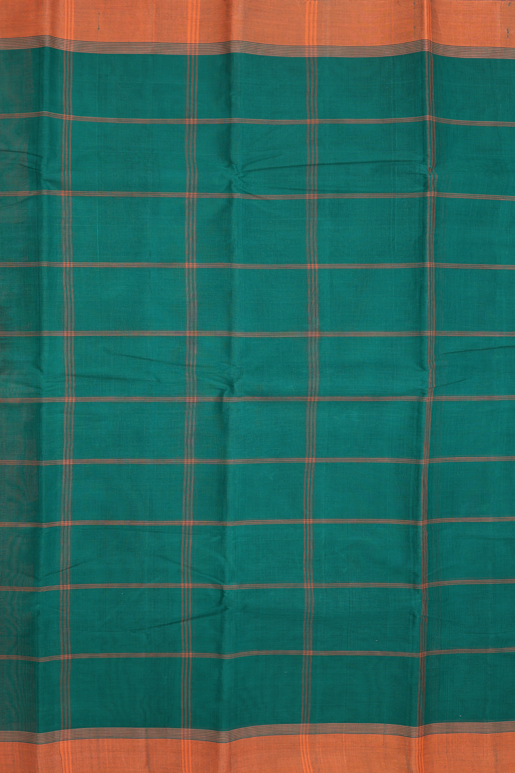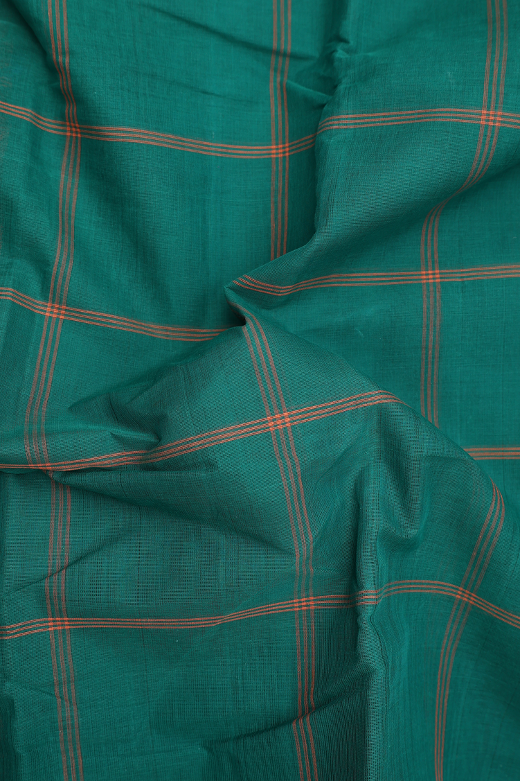 Chettinadu Cotton Saree In Emerald Green With Checks Design