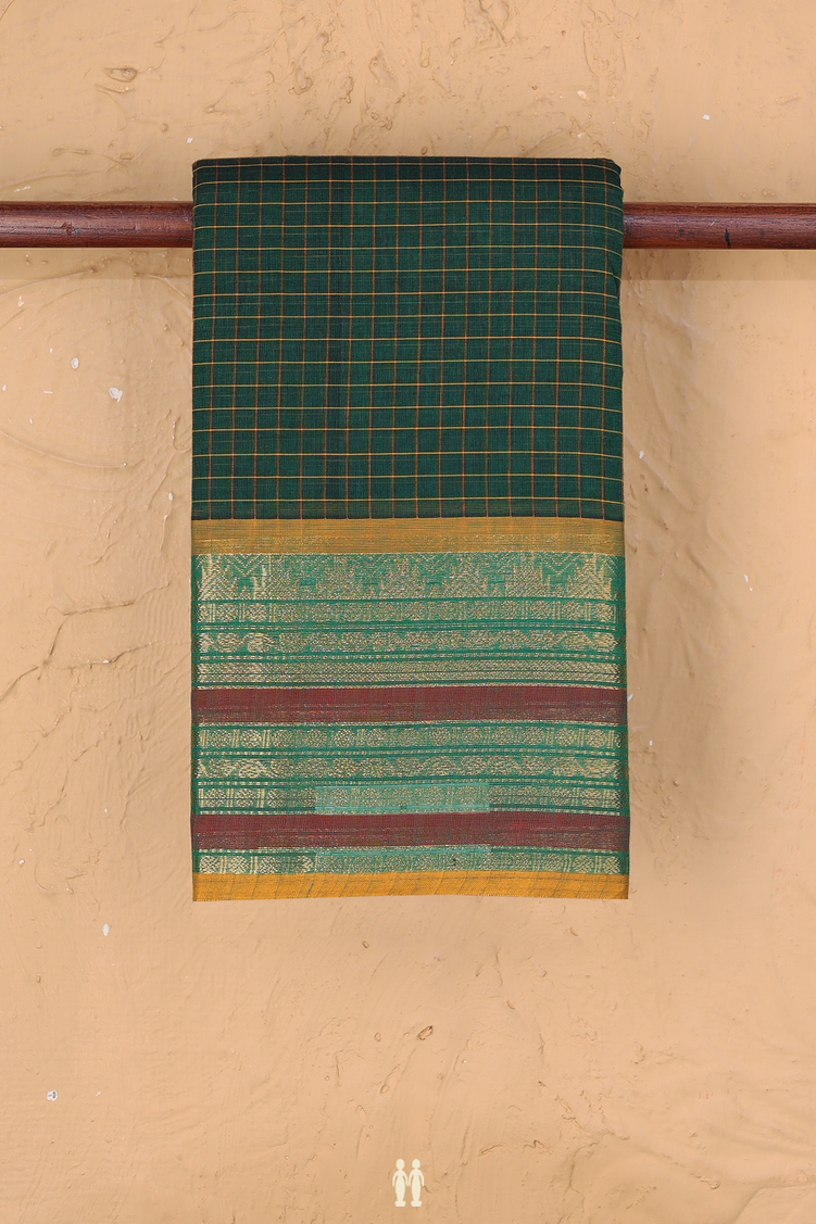 Chettinadu Cotton Saree In Forest Green With Checks Design