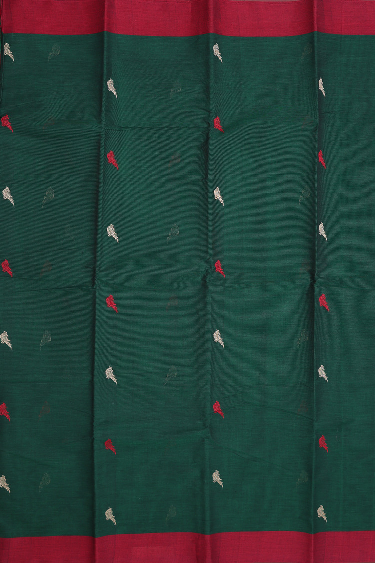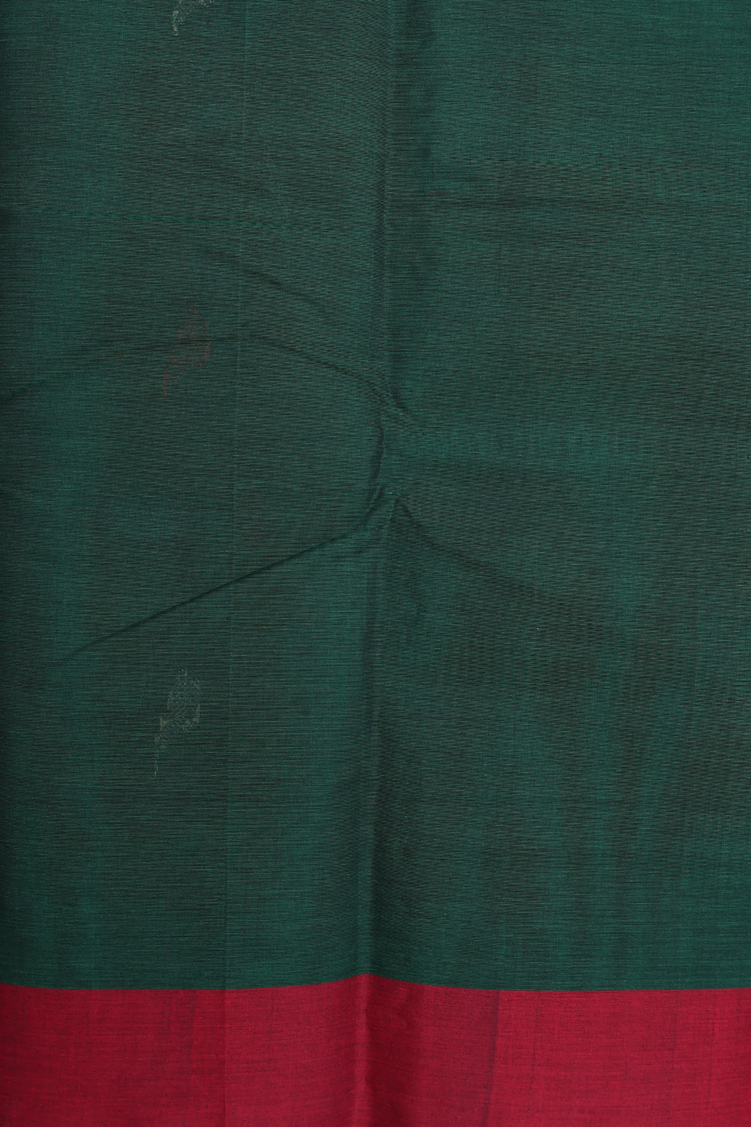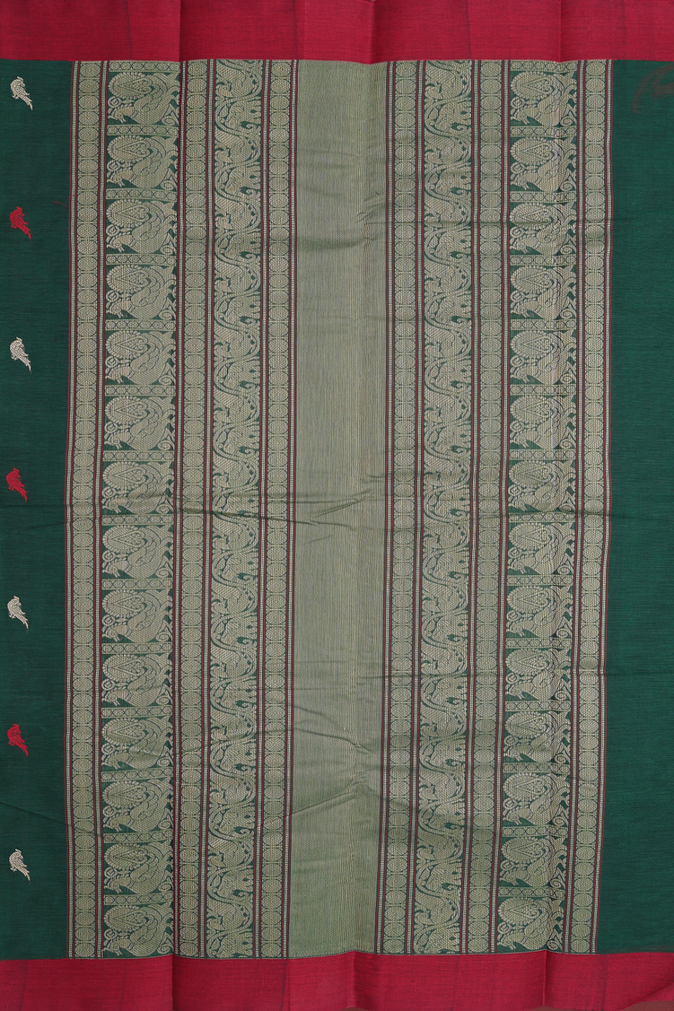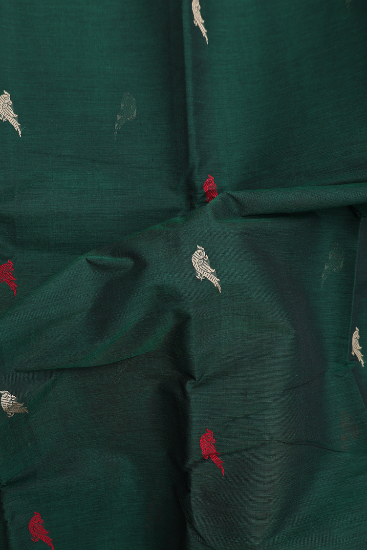 Chettinadu Cotton Saree In Forest Green With Parrot Buttas