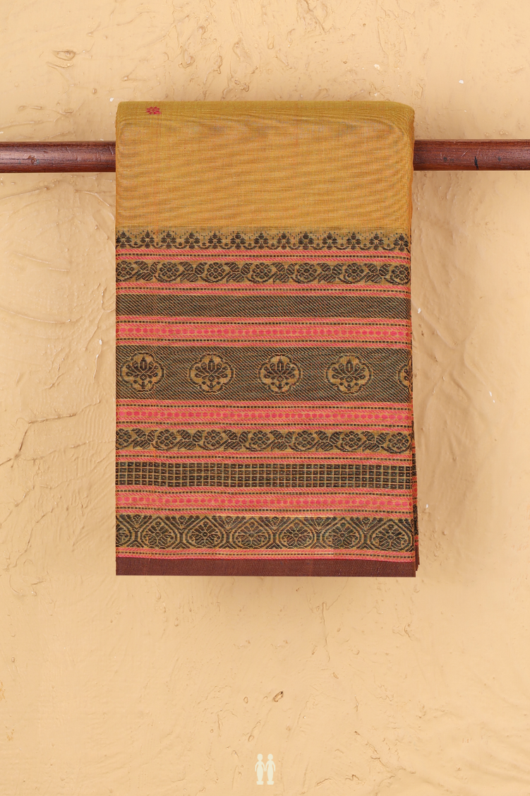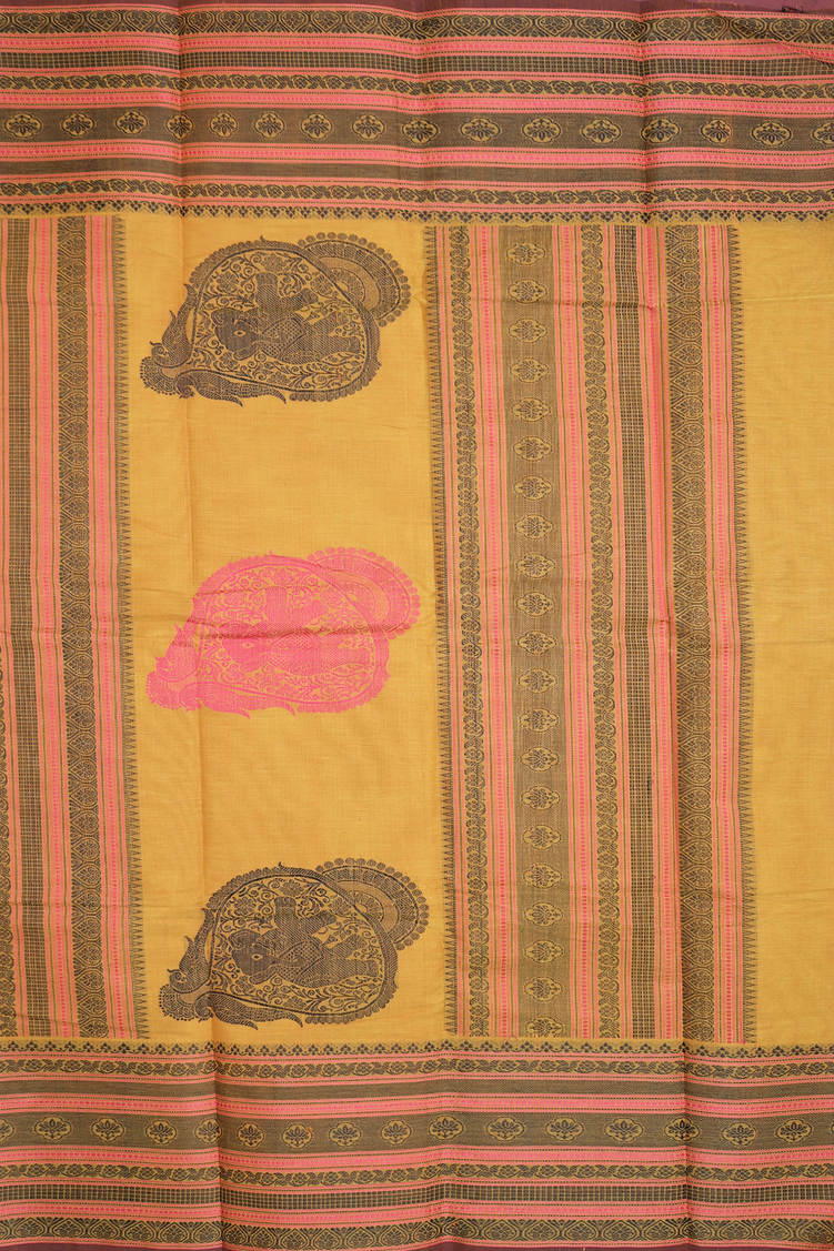 Chettinadu Cotton Saree In Golden Yellow With Floral Buttas