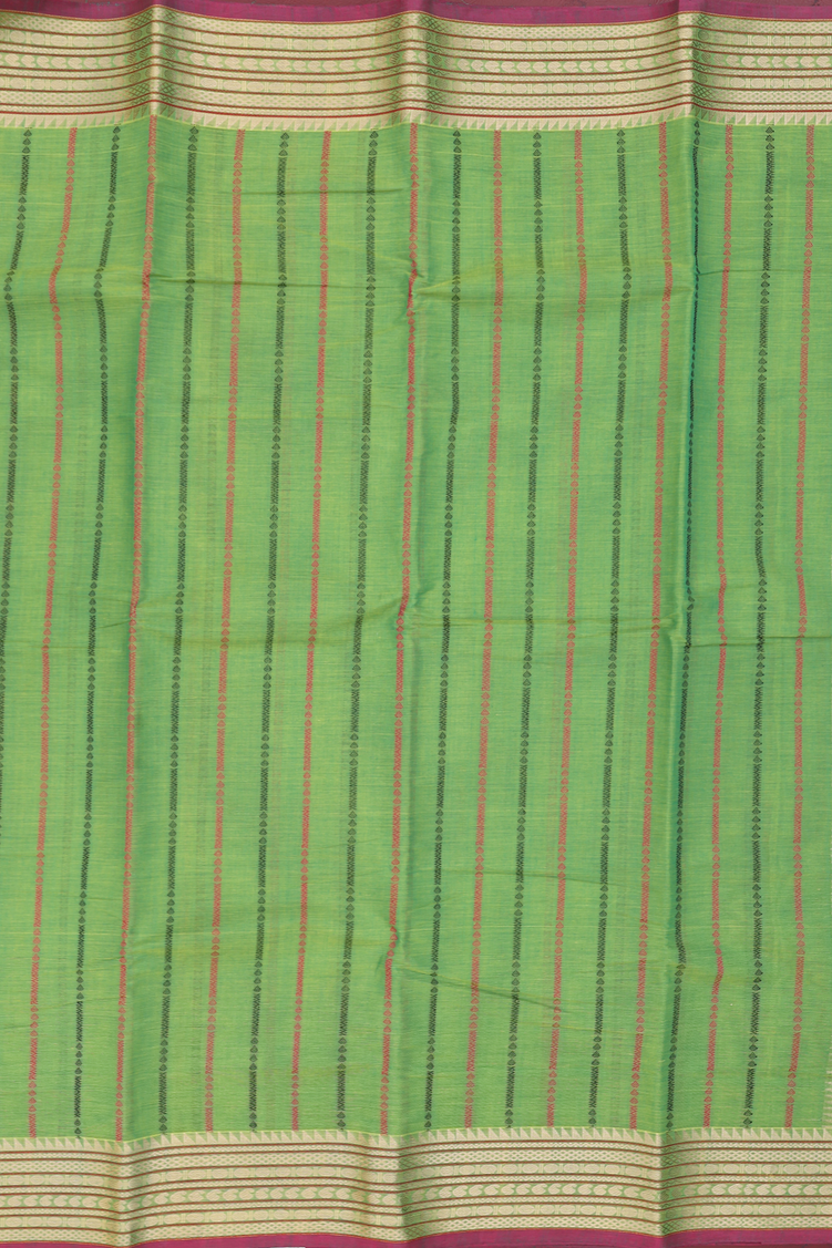 Embrace timeless elegance with this chettinadu cotton saree, a masterpiece of traditional South Indian weaving. Rendered in a sophisticated green hue, the saree features refined striped detailing that adds subtle dimension and visual interest. Crafted from pure cotton, it offers exceptional breathability and comfort for all-day wear, making it ideal for both festive occasions and everyday celebrations. The authentic Chettinadu weave showcases superior craftsmanship and durability, ensuring this saree remains a cherished addition to your collection for years to come.
