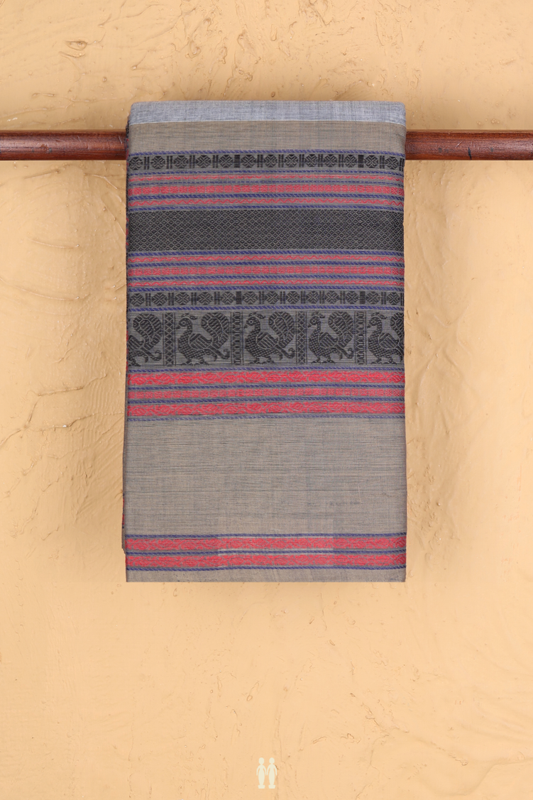 Chettinadu Cotton Saree In Grey With Contrast Border