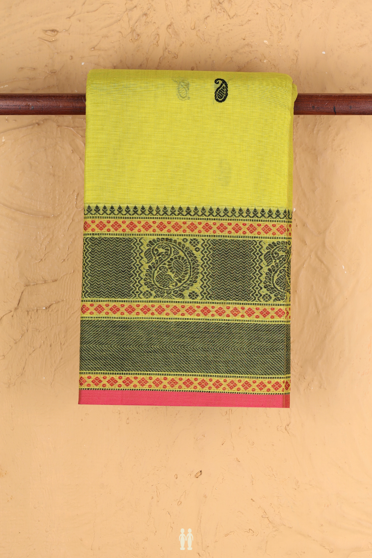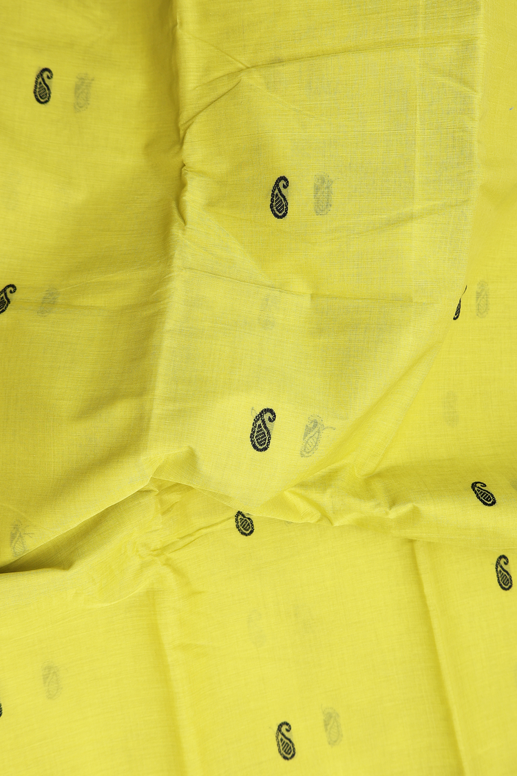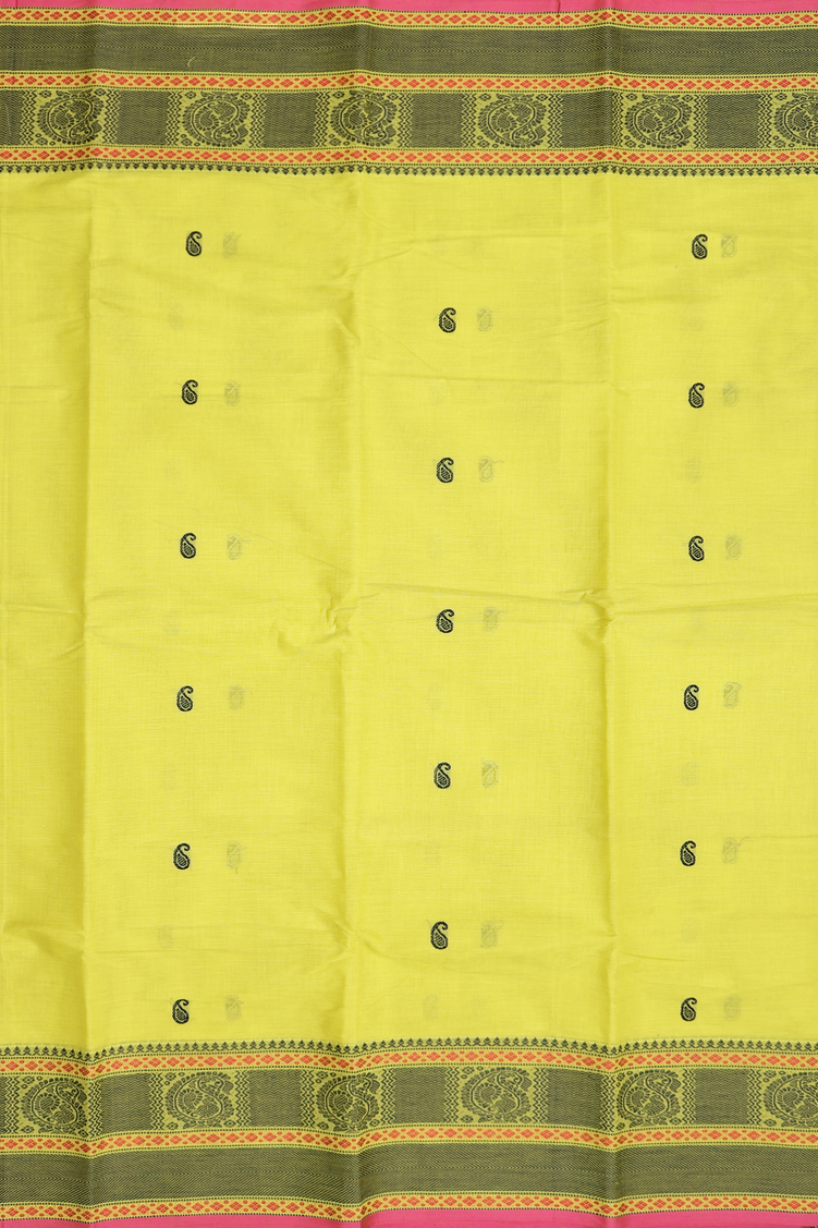 Chettinadu Cotton Saree In Lime Yellow With Paisley Buttis