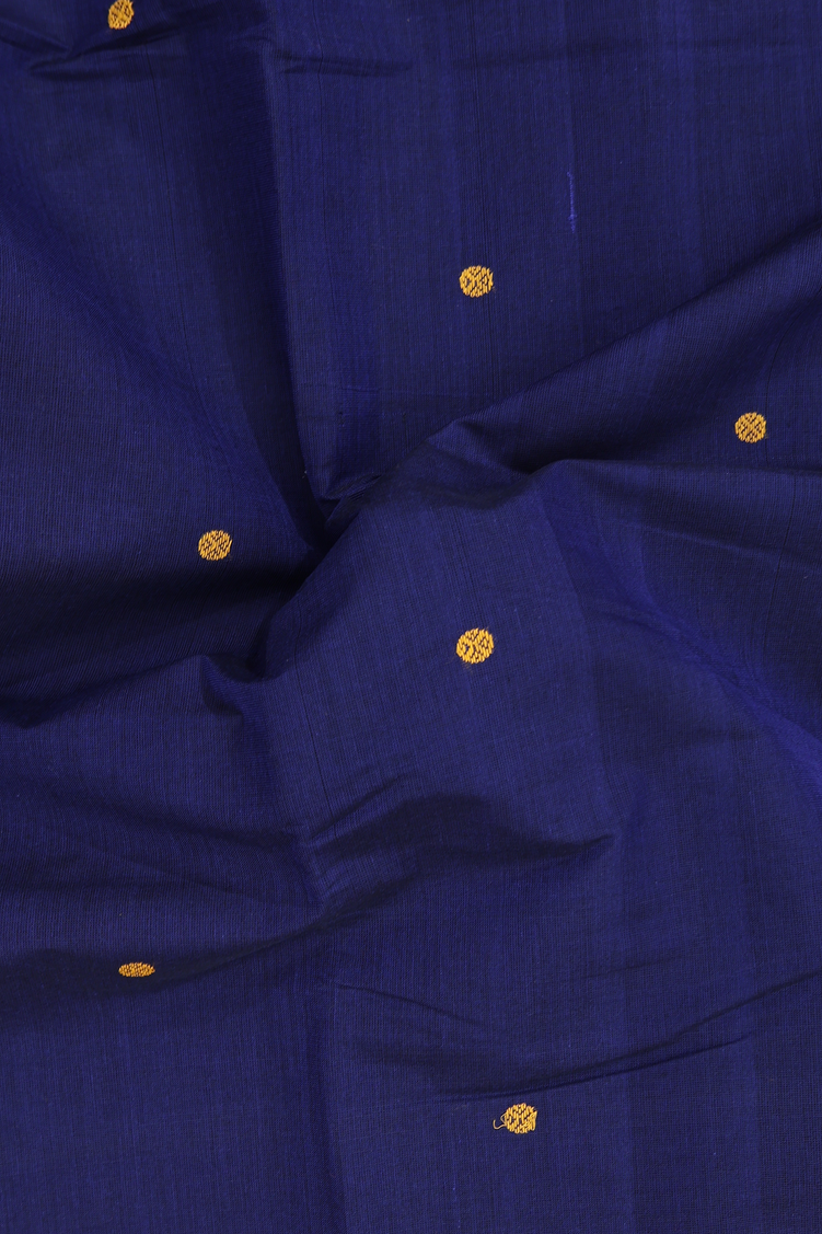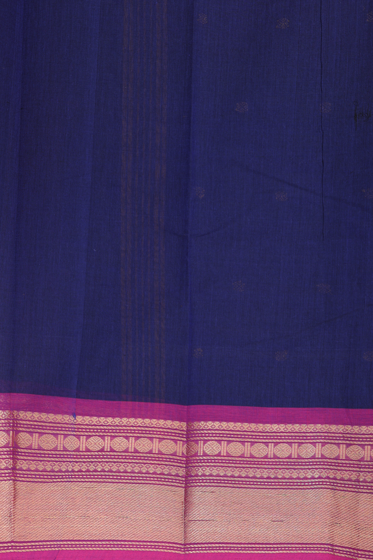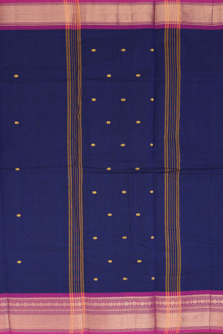 Chettinadu Cotton Saree In Navy Blue With Threadwork Buttas