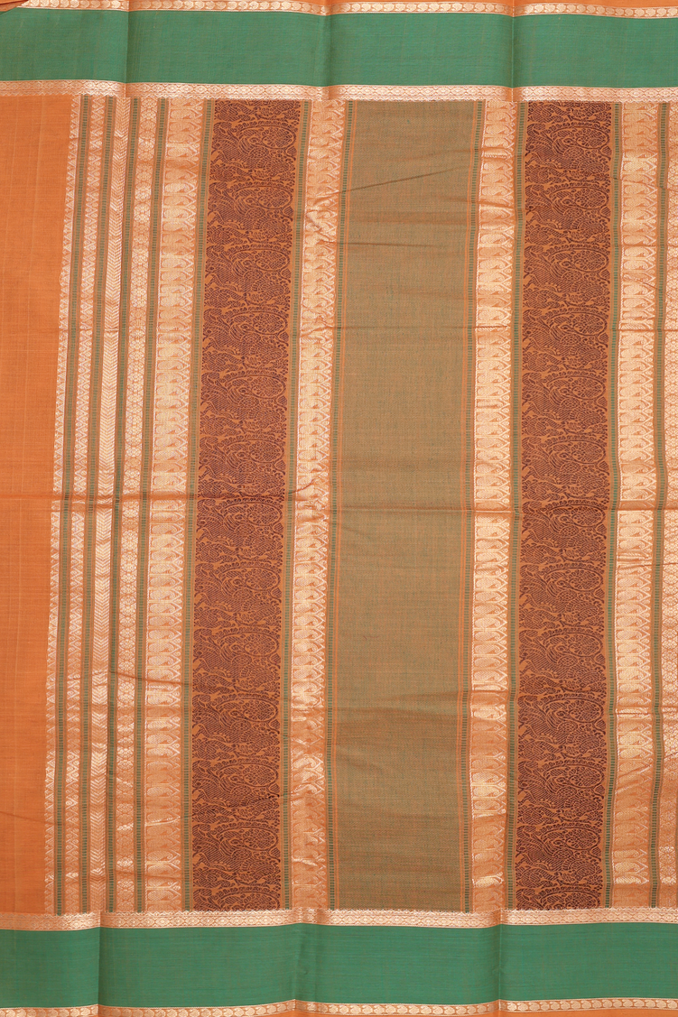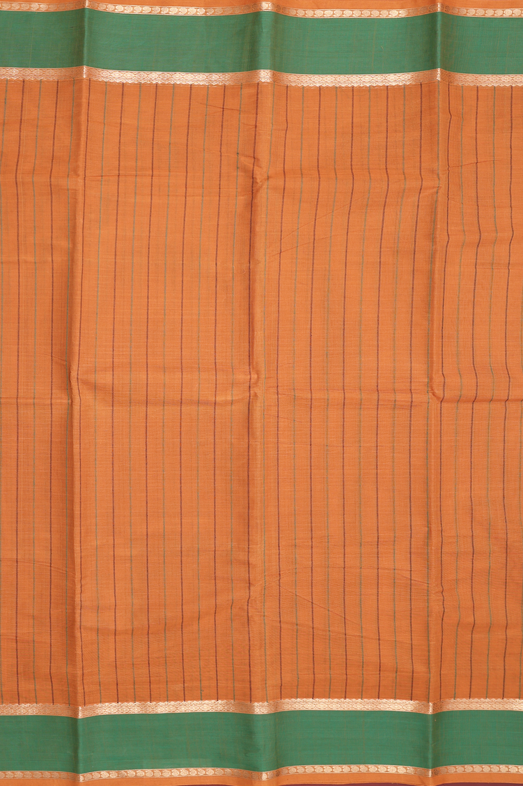 Chettinadu Cotton Saree In Ochre Orange With Stripes Design