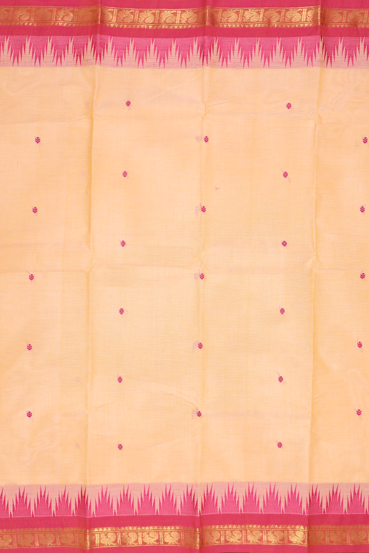 Chettinadu Cotton Saree In Orange With Threadwork Buttas