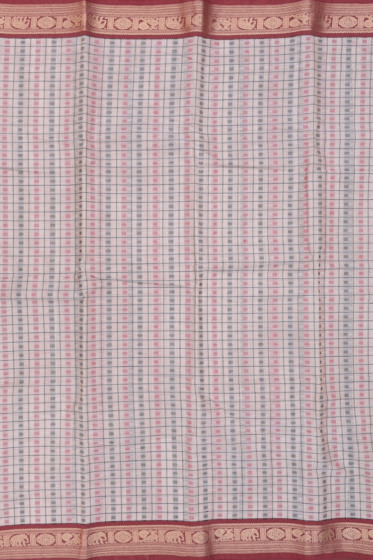 Embrace timeless elegance with this chettinadu cotton saree, a masterpiece of traditional South Indian weaving. Rendered in soft pastel brown, the subtle checks design adds refined texture without overwhelming the eye. Crafted from pure cotton, this saree offers breathable comfort ideal for warm climates while maintaining its structured drape. Perfect for both casual gatherings and formal occasions, its understated sophistication makes it a versatile addition to any wardrobe. Experience the heritage and quality that defines authentic Chettinadu craftsmanship.