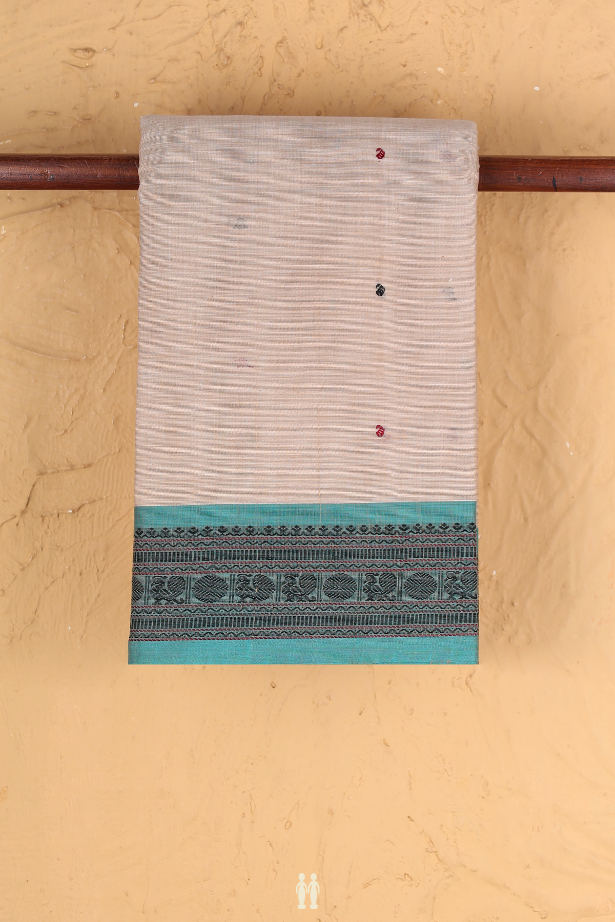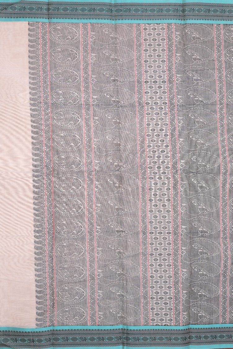 Chettinadu Cotton Saree In Pastel Brown With Paisley Buttis