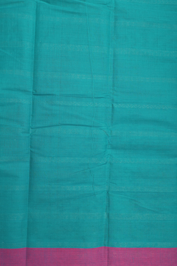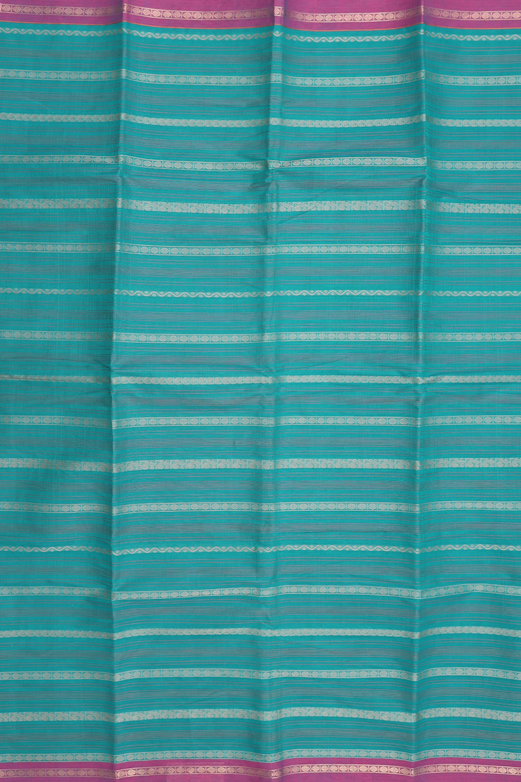 Chettinadu Cotton Saree In Peacock Blue With Stripes Design