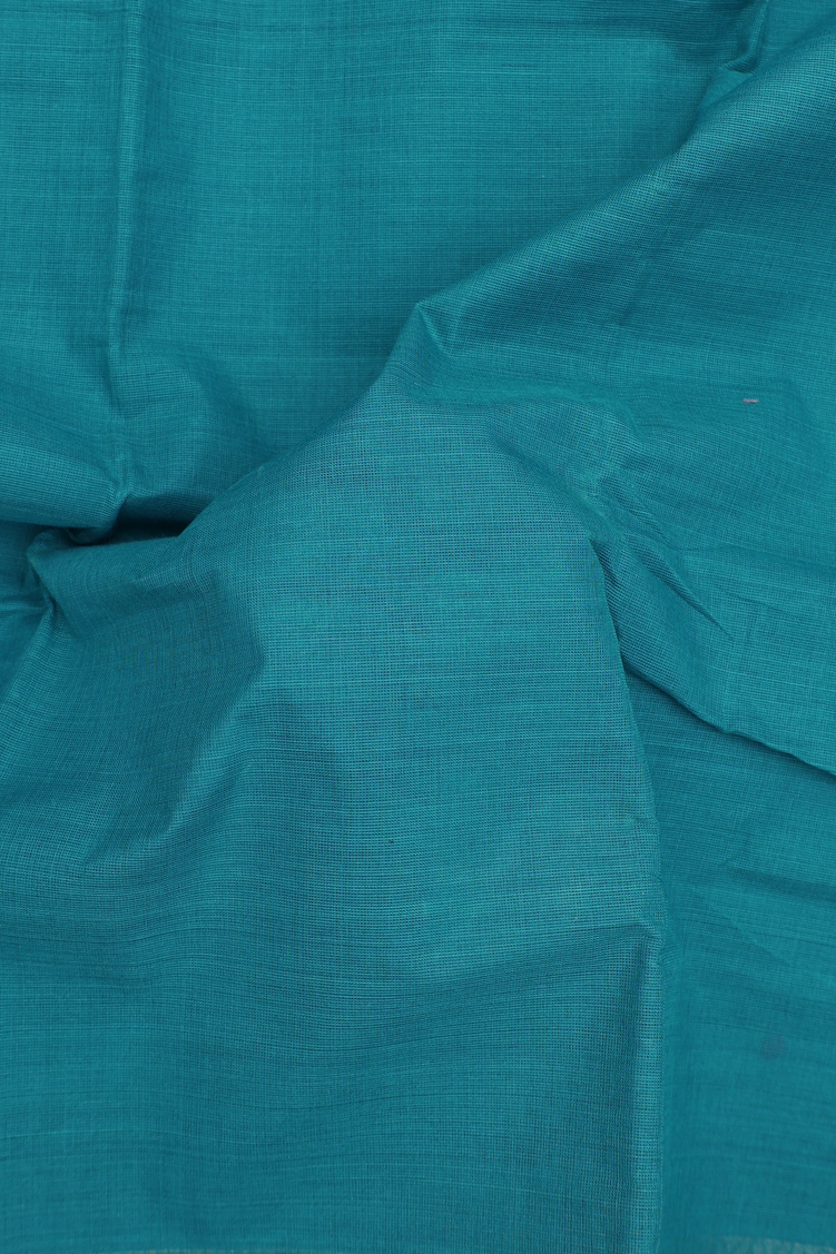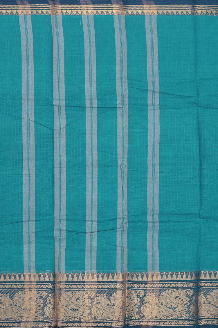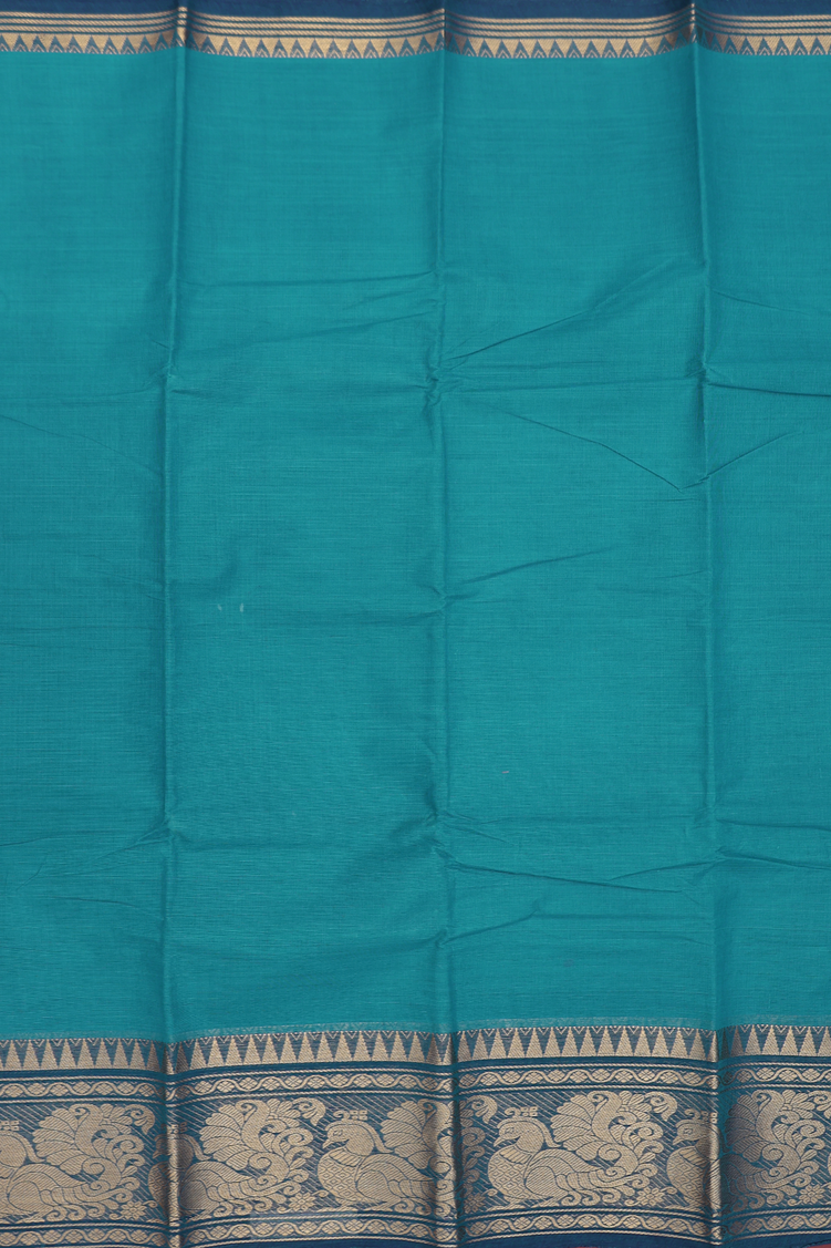 Chettinadu Cotton Saree In Peacock Blue With Zari Border