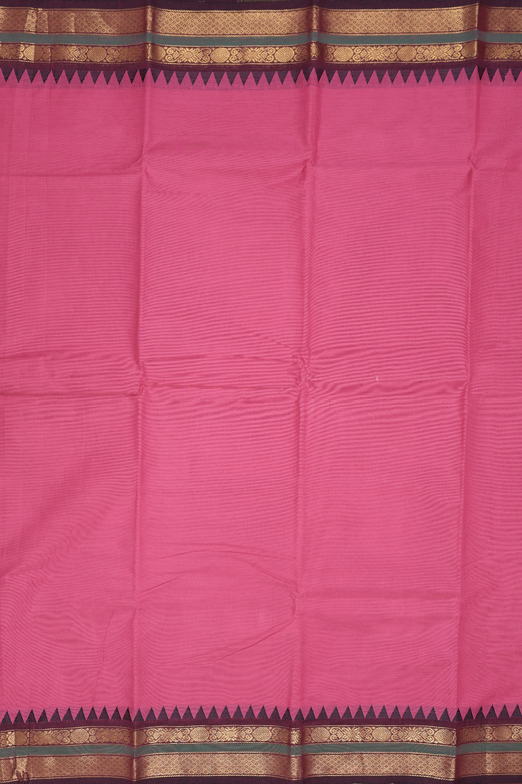 Chettinadu Cotton Saree In Pink With Contrast Border