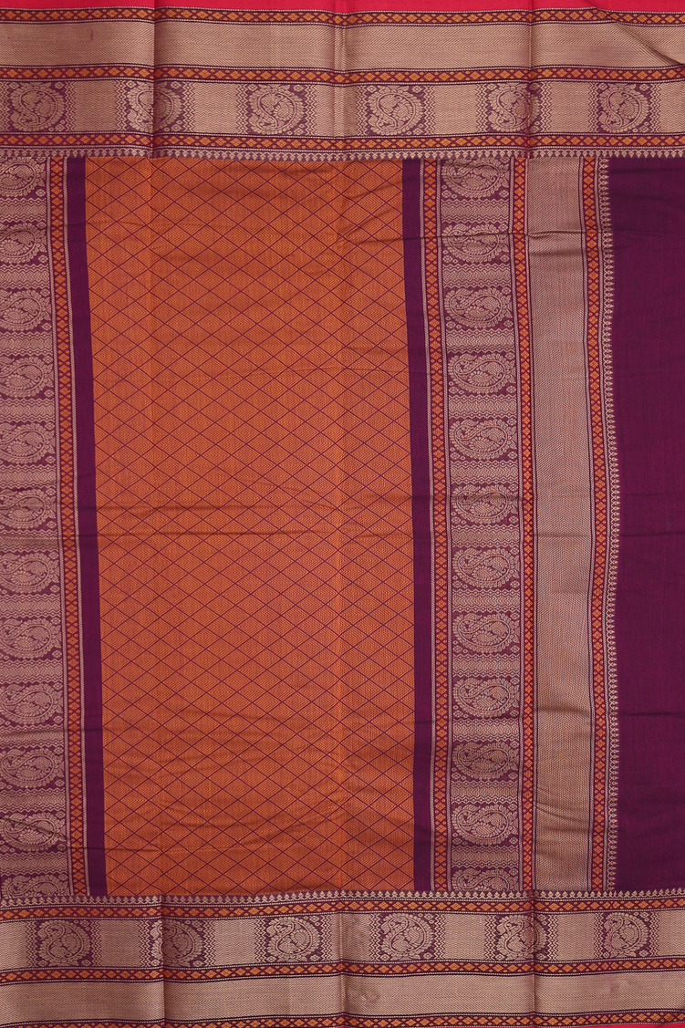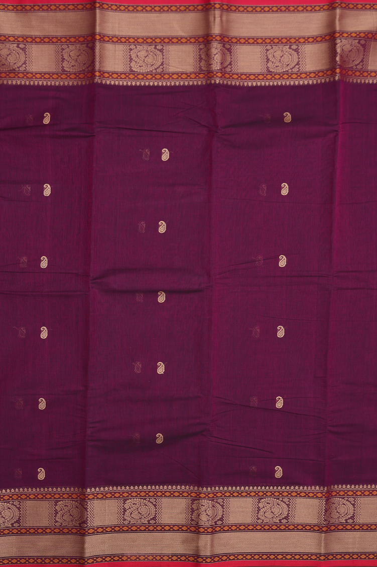 Chettinadu Cotton Saree In Plum Purple With Paisley Buttas
