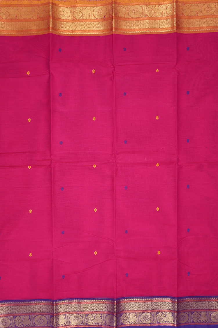 Chettinadu Cotton Saree In Rani Pink With Threadwork Buttas