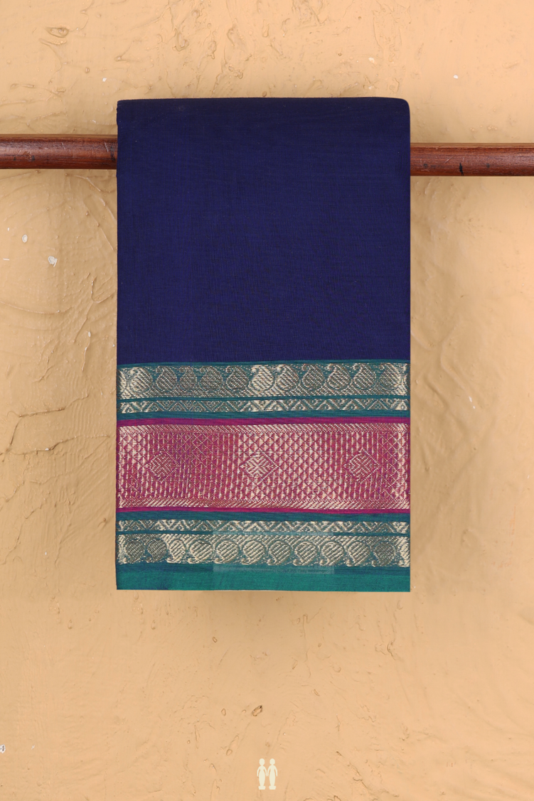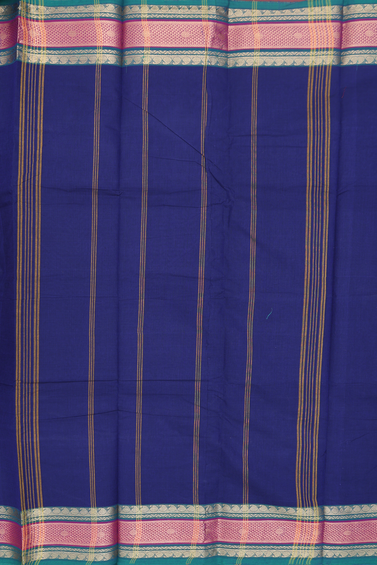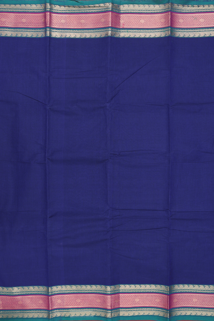 Chettinadu Cotton Saree In Royal Blue With Zari Border