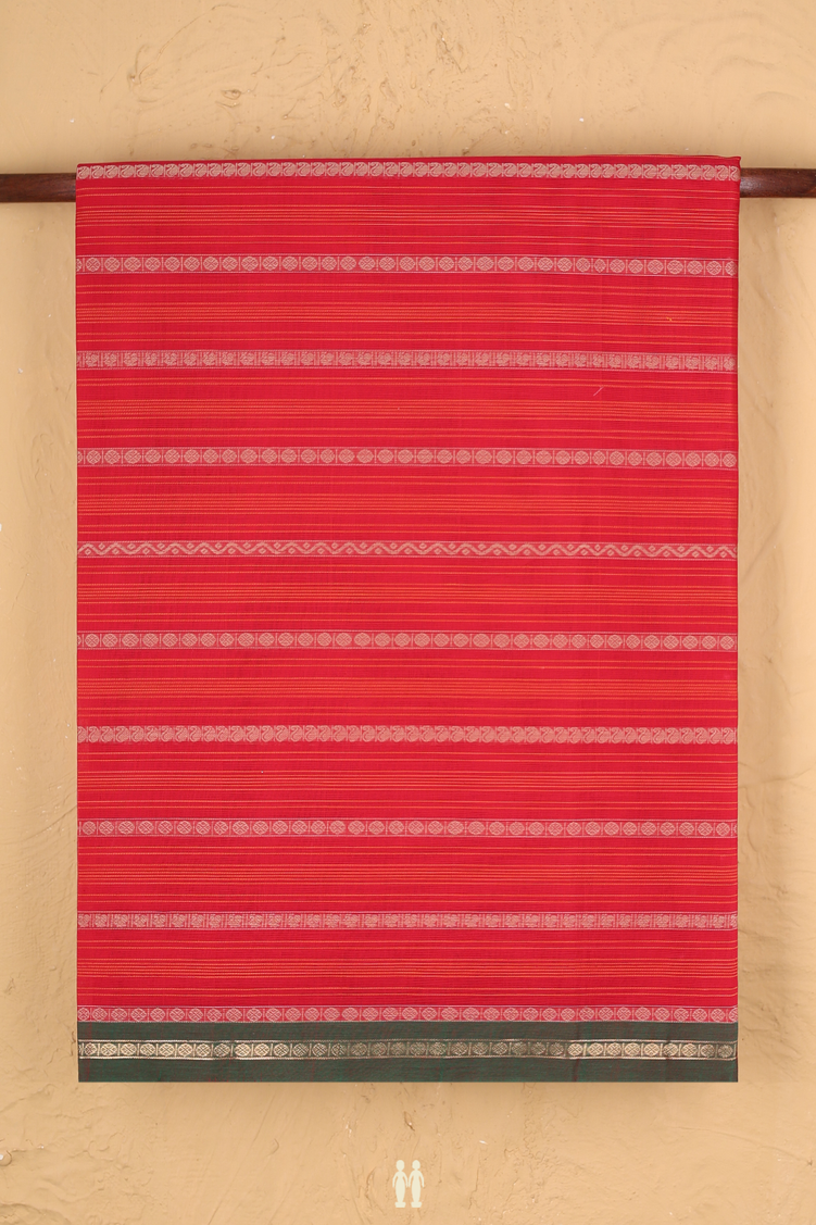 Coimbatore Cotton Saree In Scarlet Red With Checks Design