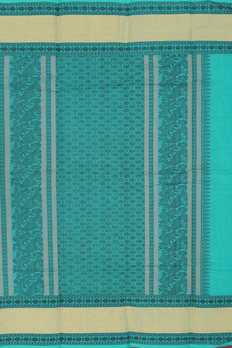 Embrace timeless elegance with this chettinadu cotton saree in serene sea green, adorned with a refined checks design. Handwoven using traditional techniques, this saree celebrates authentic south indian craftsmanship with its breathable cotton fabric, perfect for warm climates and everyday wear. The subtle geometric pattern adds understated sophistication, while the natural drape flatters all silhouettes. Ideal for casual gatherings, festive occasions, or making a graceful statement with heritage-inspired style.