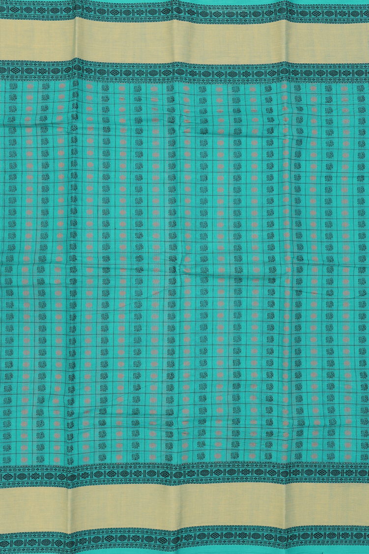 Chettinadu Cotton Saree In Sea Green With Checks Design