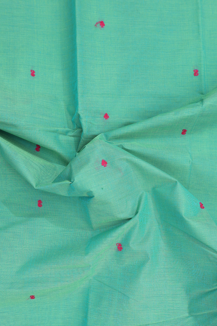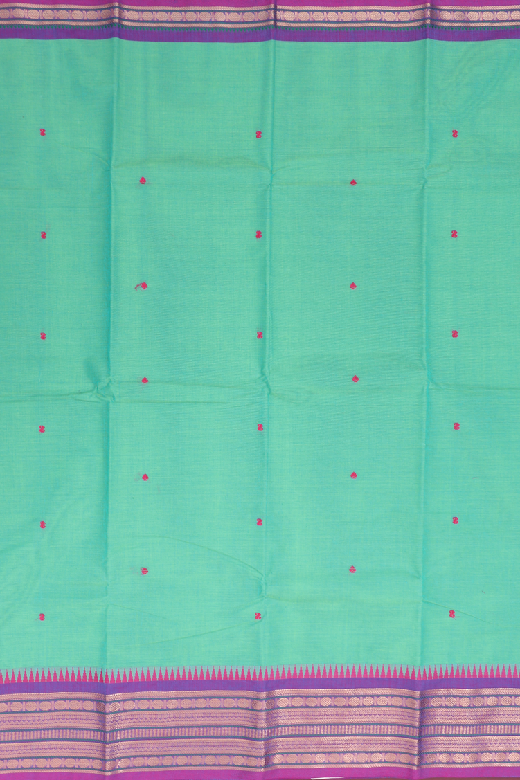 Chettinadu Cotton Saree In Sea Green With Threadwork Buttas
