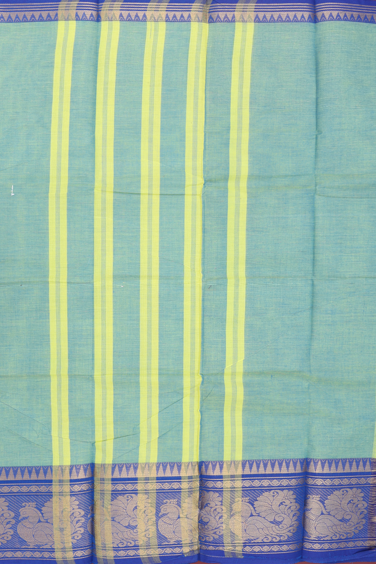 Chettinadu Cotton Saree In Stone Green With Peacock Border