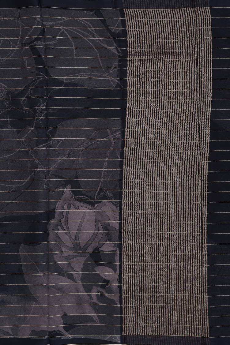 This elegant chiffon saree in black and brown features a subtle stripes design, blending classic tones with a contemporary pattern. Its lightweight fabric drapes effortlessly, offering both comfort and style for formal occasions. Perfect for those who appreciate refined sophistication and timeless appeal.