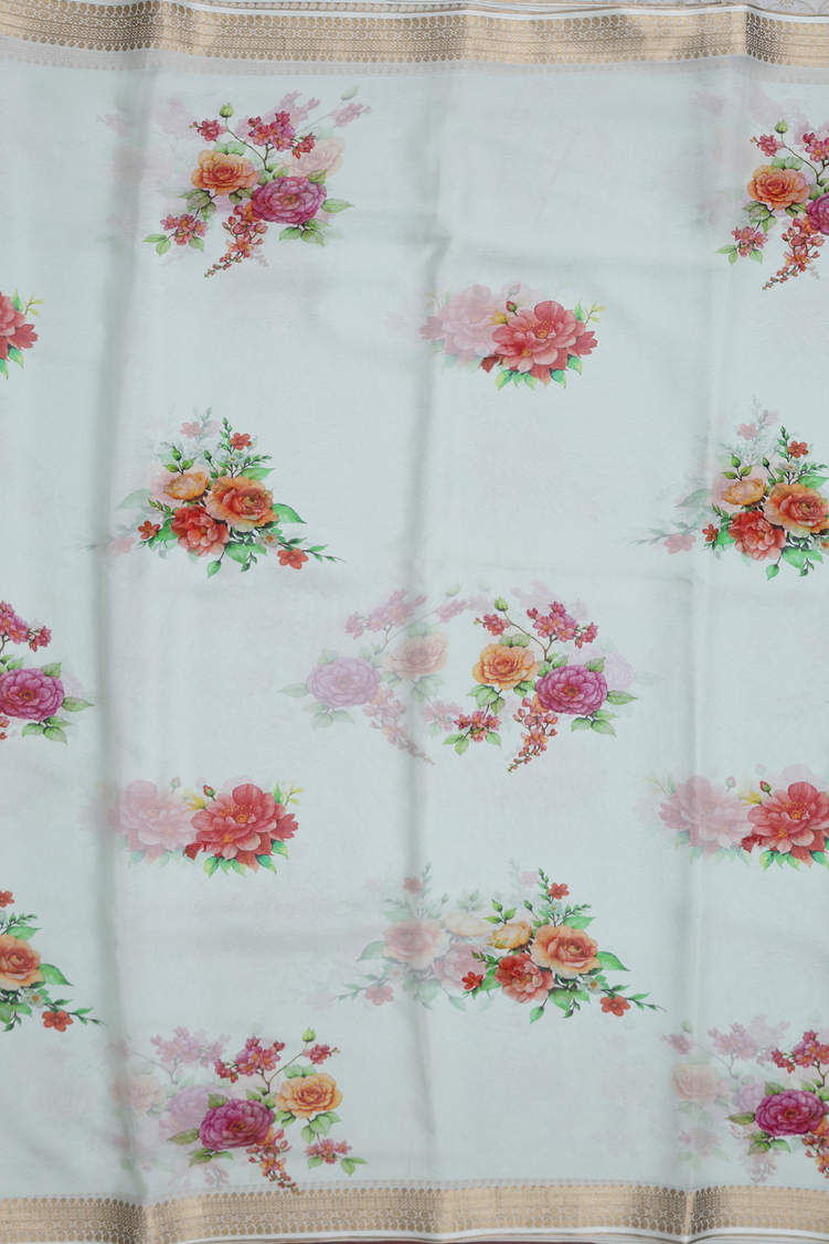 Elevate your ensemble with this chiffon saree in a graceful blend of green and beige, adorned with delicate floral prints. Its lightweight fabric drapes effortlessly, offering both comfort and elegance. Perfect for formal occasions, this saree combines subtle hues with intricate design to create a timeless look that speaks of refined taste.