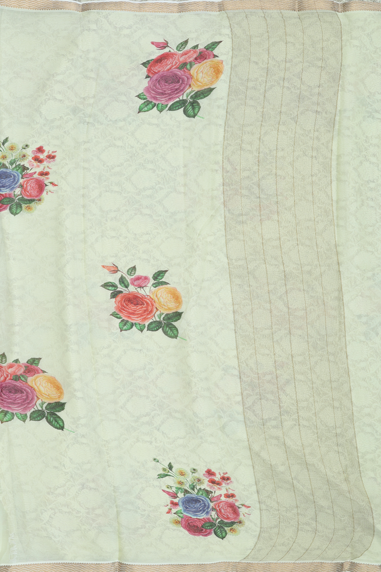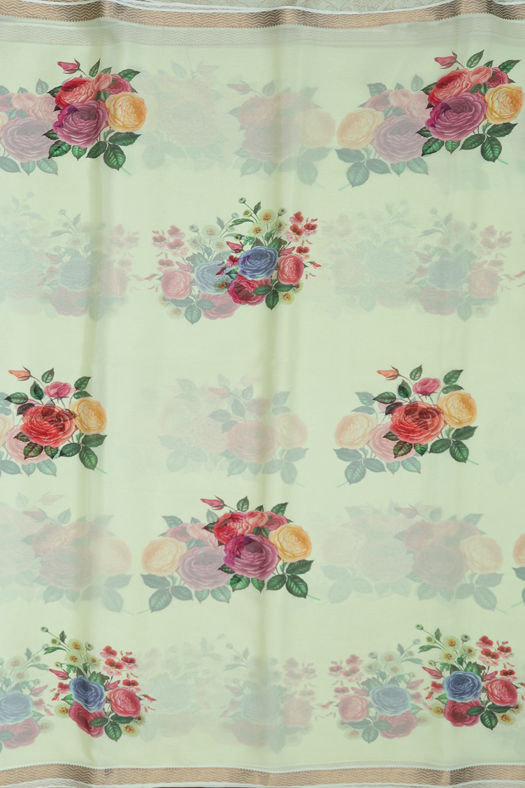 Chiffon Saree In Green With Floral Printed Design