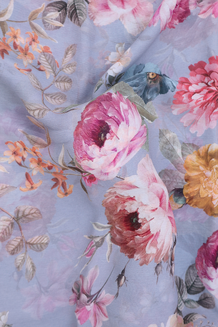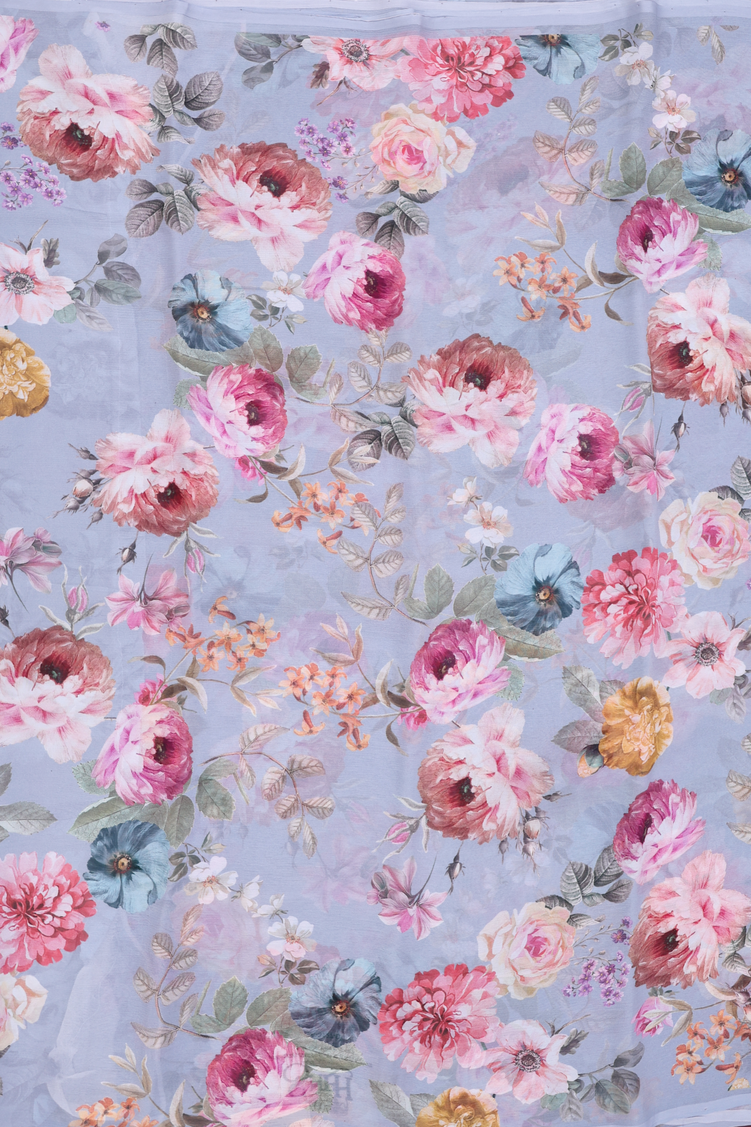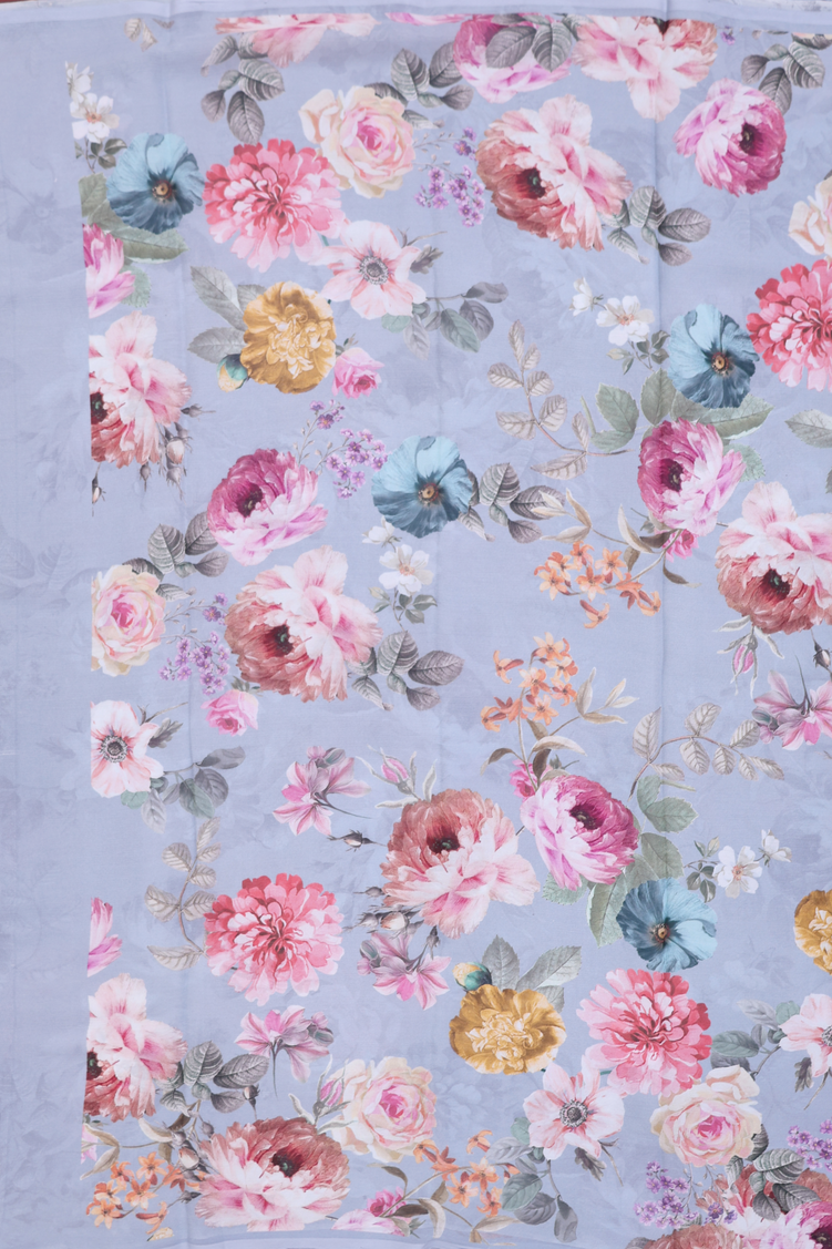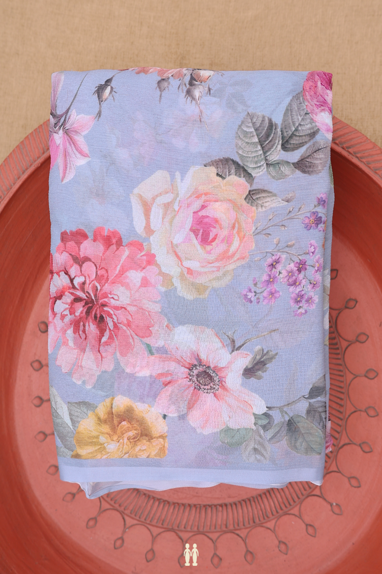 Chiffon Saree In Steel Blue With Floral Printed Design