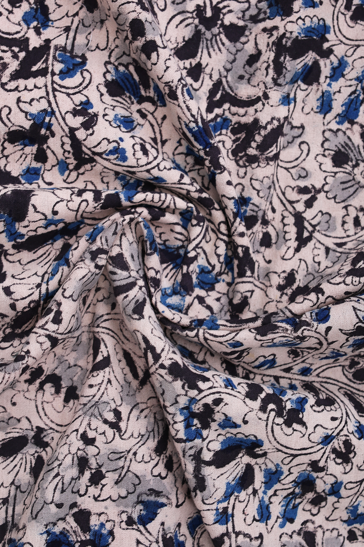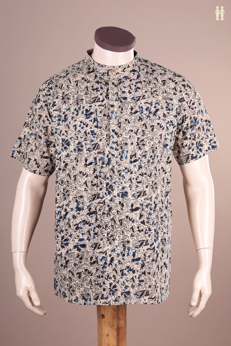 Chinese Collar Floral Design Beige Kalamkari Cotton Short Kurta