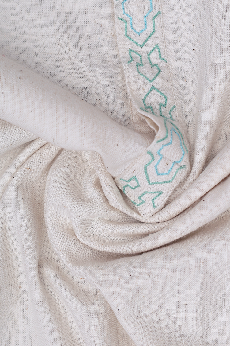 Crafted from handspun cotton, this long kurta in a refined beige tone features a distinctive Chinese collar that adds a subtle edge to its classic silhouette. Lightweight and breathable, it offers comfort along with understated elegance, making it an ideal choice for sophisticated, everyday wear or special occasions. The plain design emphasizes its quality fabric and meticulous craftsmanship.