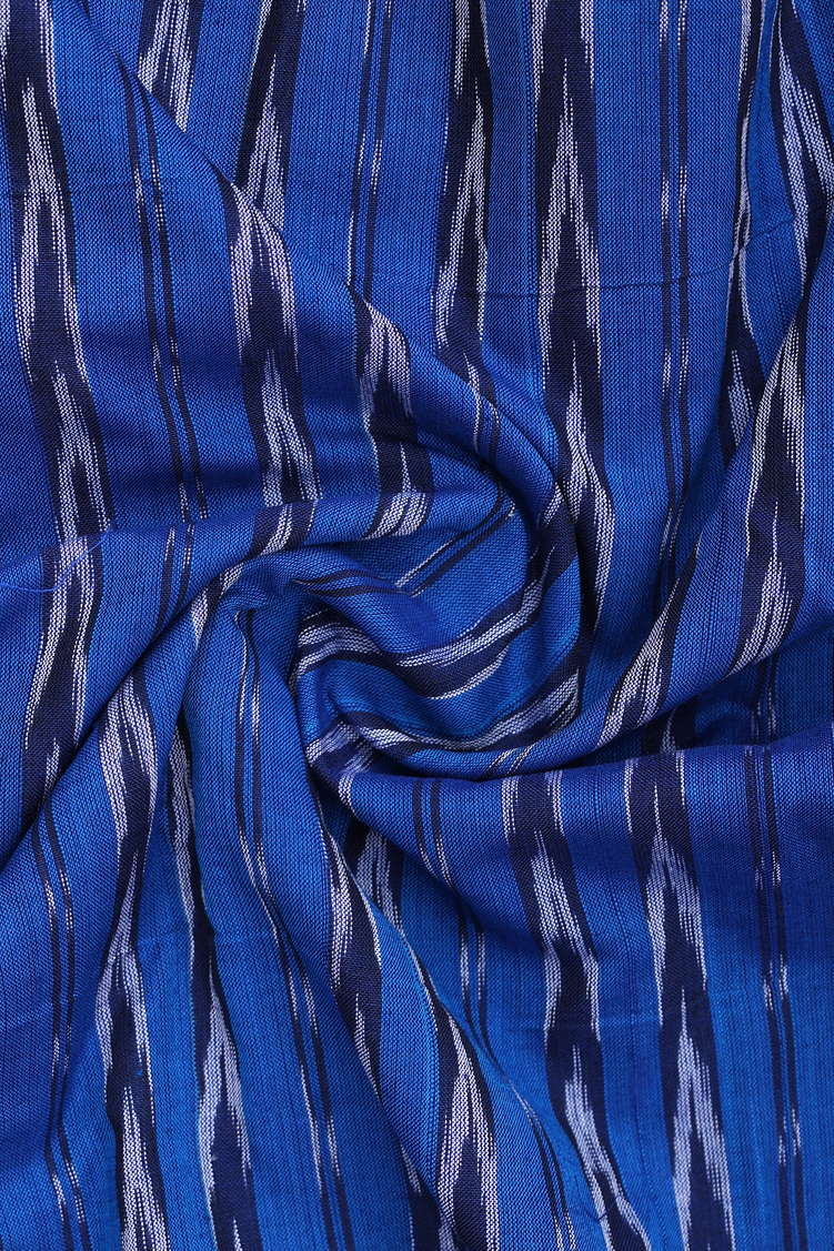 Chinese Collar Stripes Design Blue Ikat Cotton Short Kurta