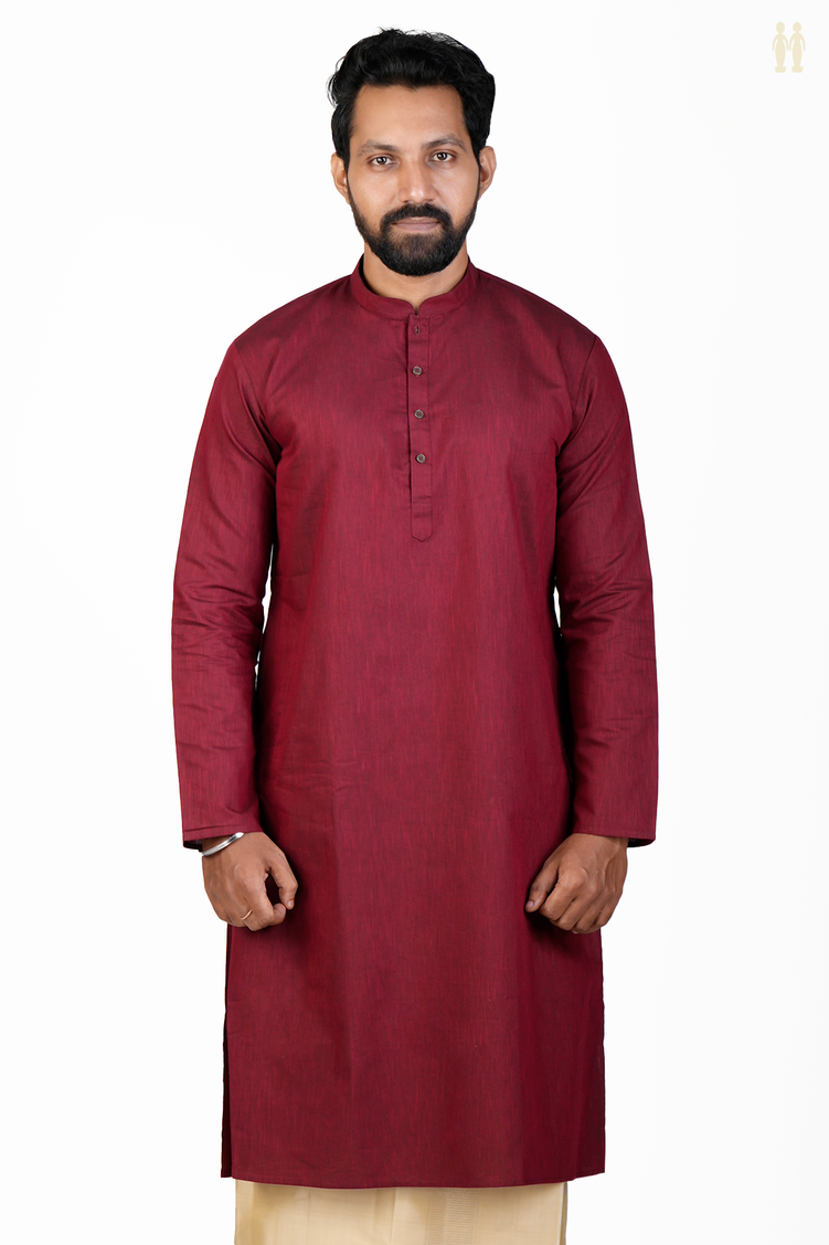Elevate your ethnic wardrobe with this sophisticated long kurta, crafted from breathable cotton in a rich burgundy red. Featuring a refined chinese collar and a clean, plain design, it offers timeless elegance and comfort for any occasion. The lightweight fabric ensures all-day ease, making it a versatile choice for both formal and casual settings.