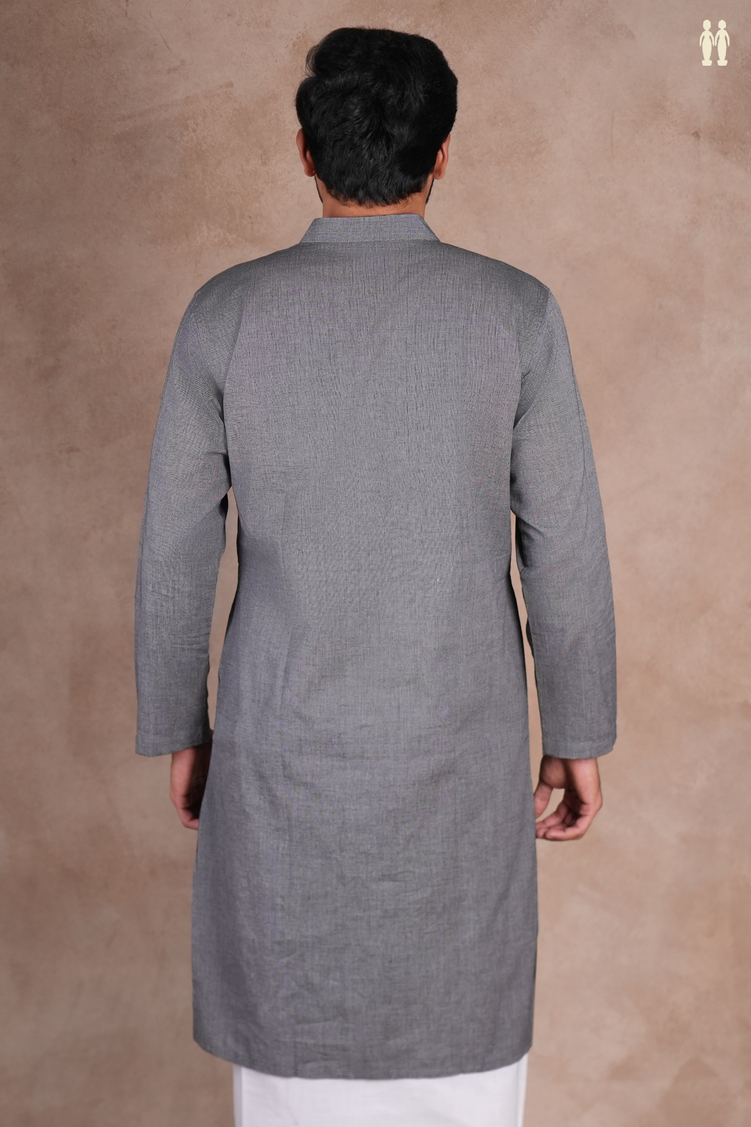 Chinese Collar Plain Grey Cotton Long Kurta
